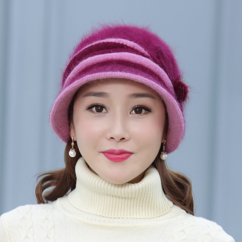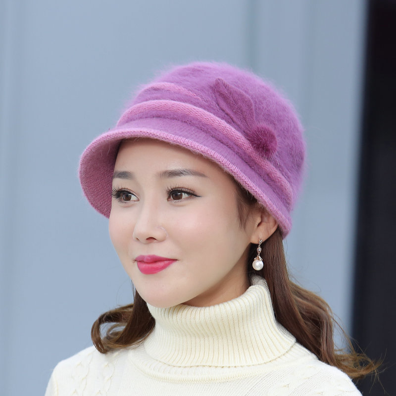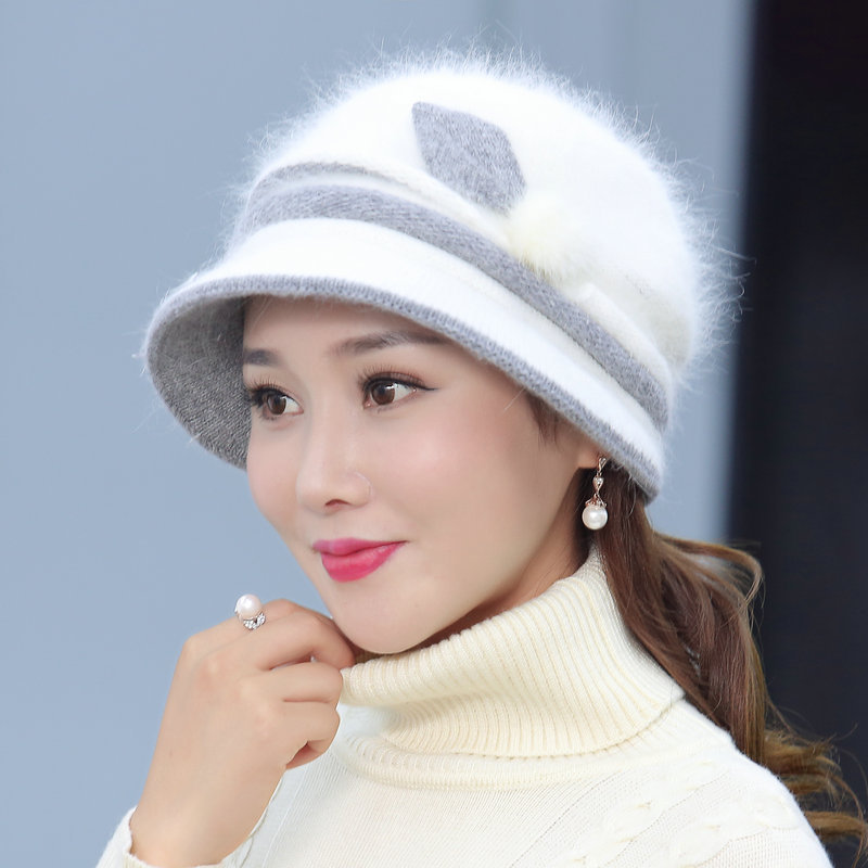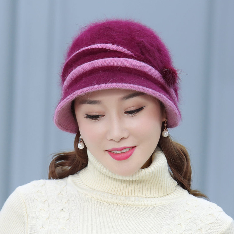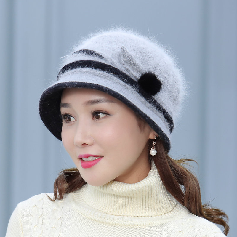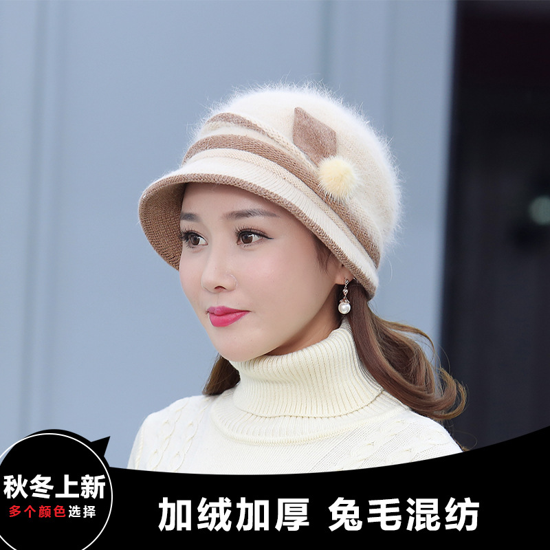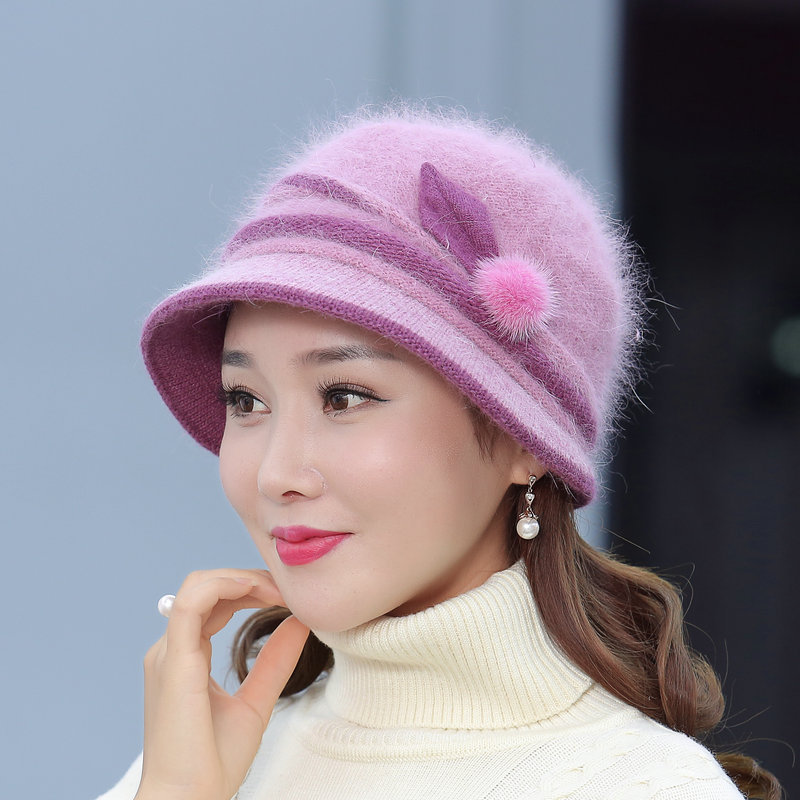autumn and winter middle-aged and elderly hat female rabbit fur knitted woolen cap warm bucket hat grandma lady hat winter mom style hat