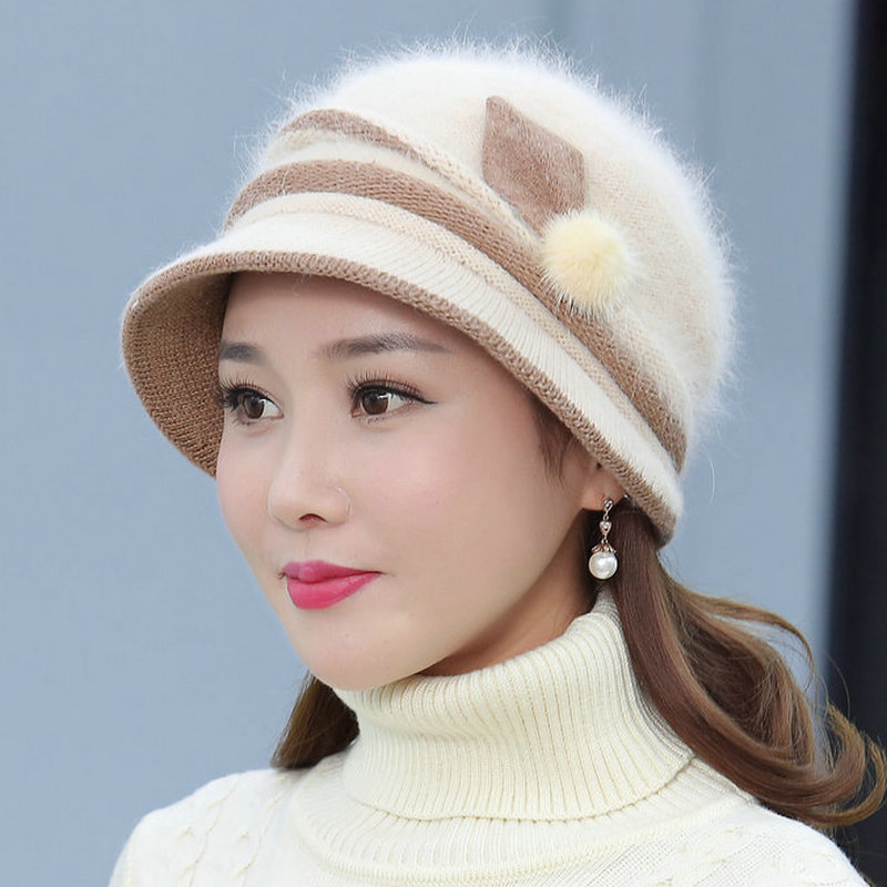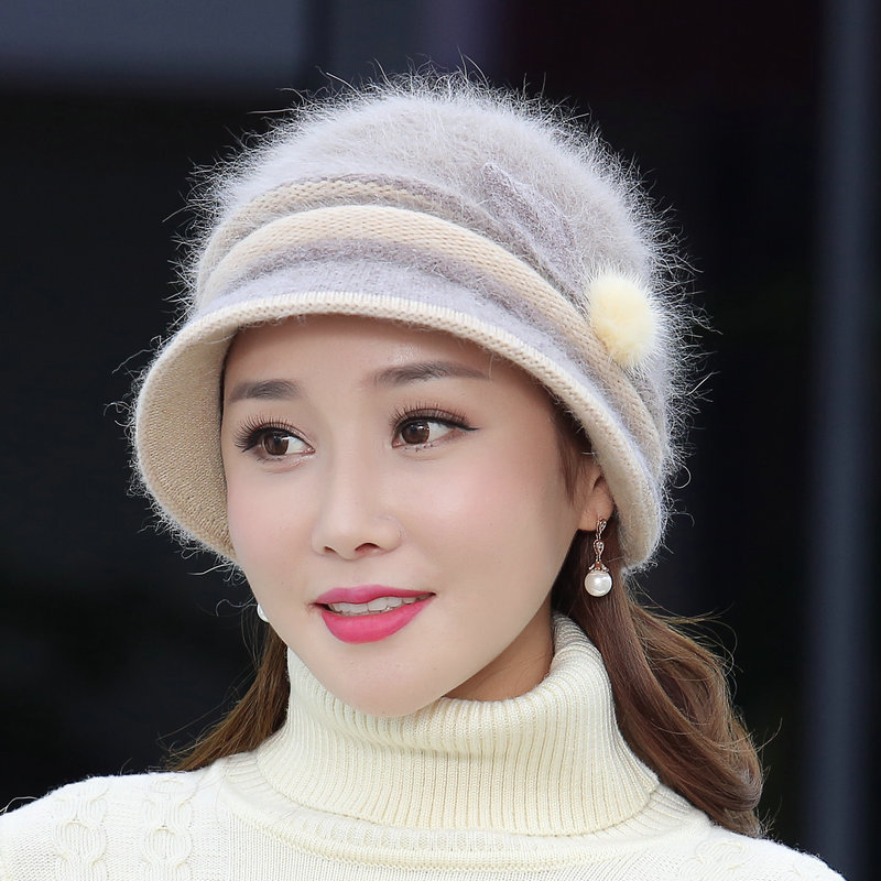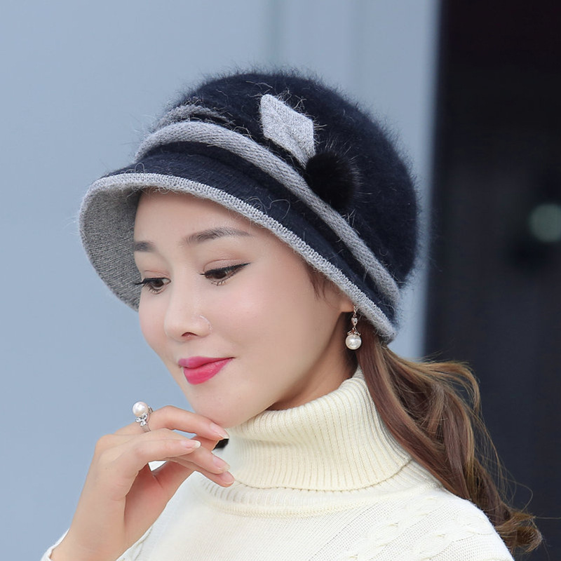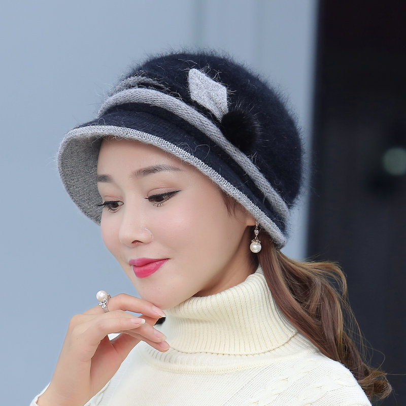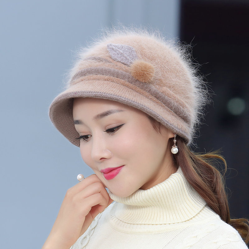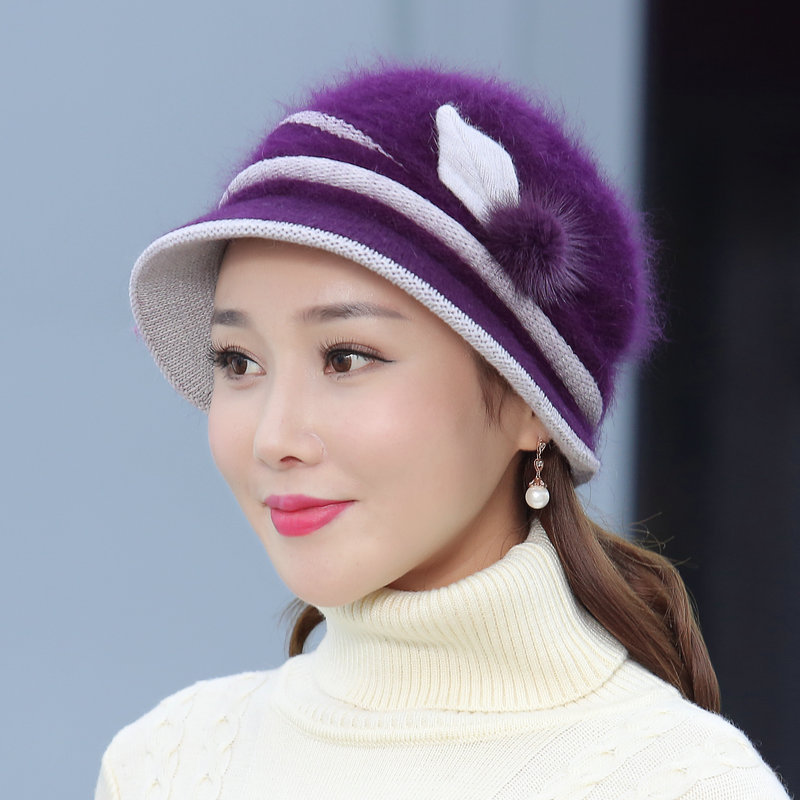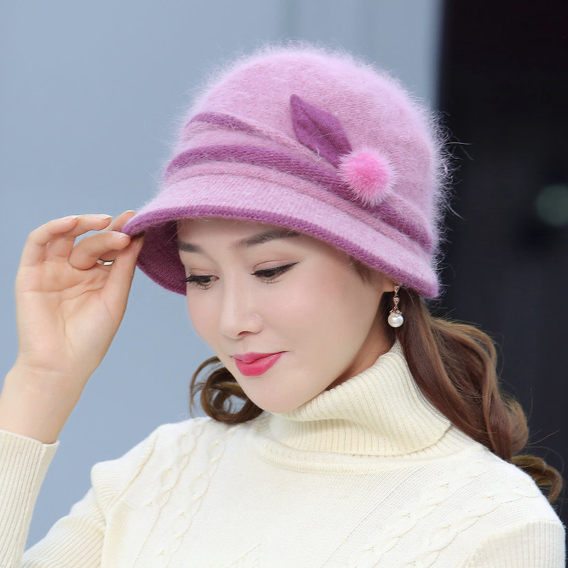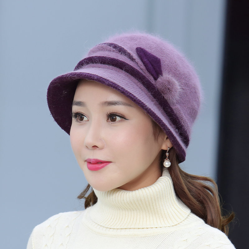 autumn and winter middle-aged and elderly hat female rabbit fur knitted woolen cap warm bucket hat grandma lady hat winter mom style hat