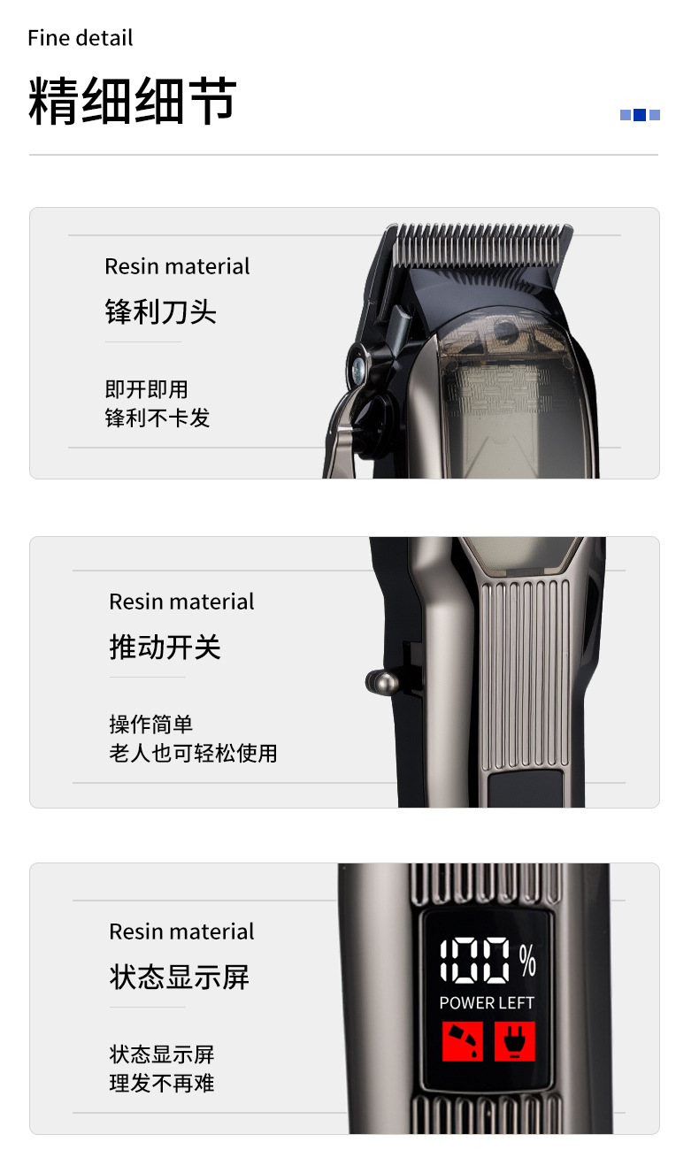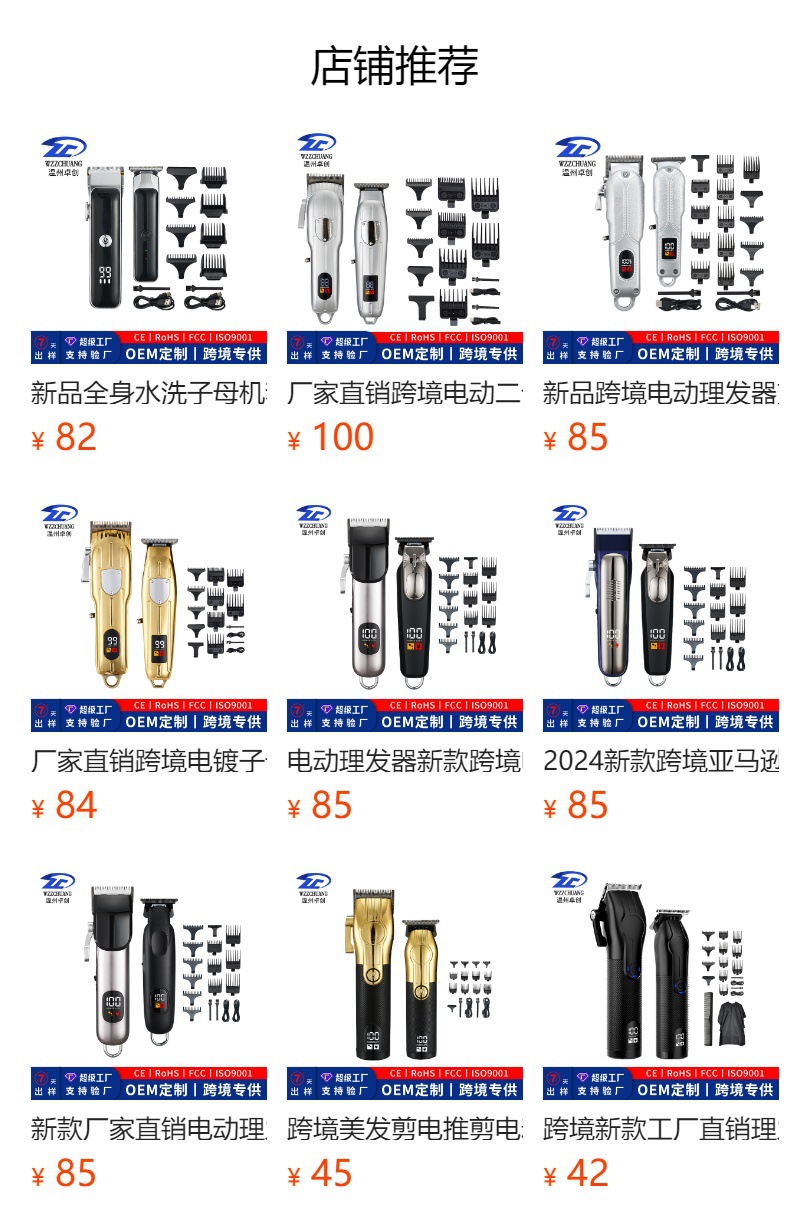 ZCC301 Sub-model: Complete machine (including protection cover), USB cable (Huawei), cleaning brush, 3 black stop combs (0.5MM, 1MM, 2MM), neutral packaging, instruction manual.