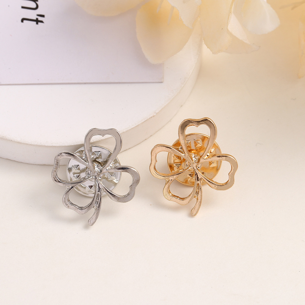 silver glossy four-leaf clover + butterfly clasp