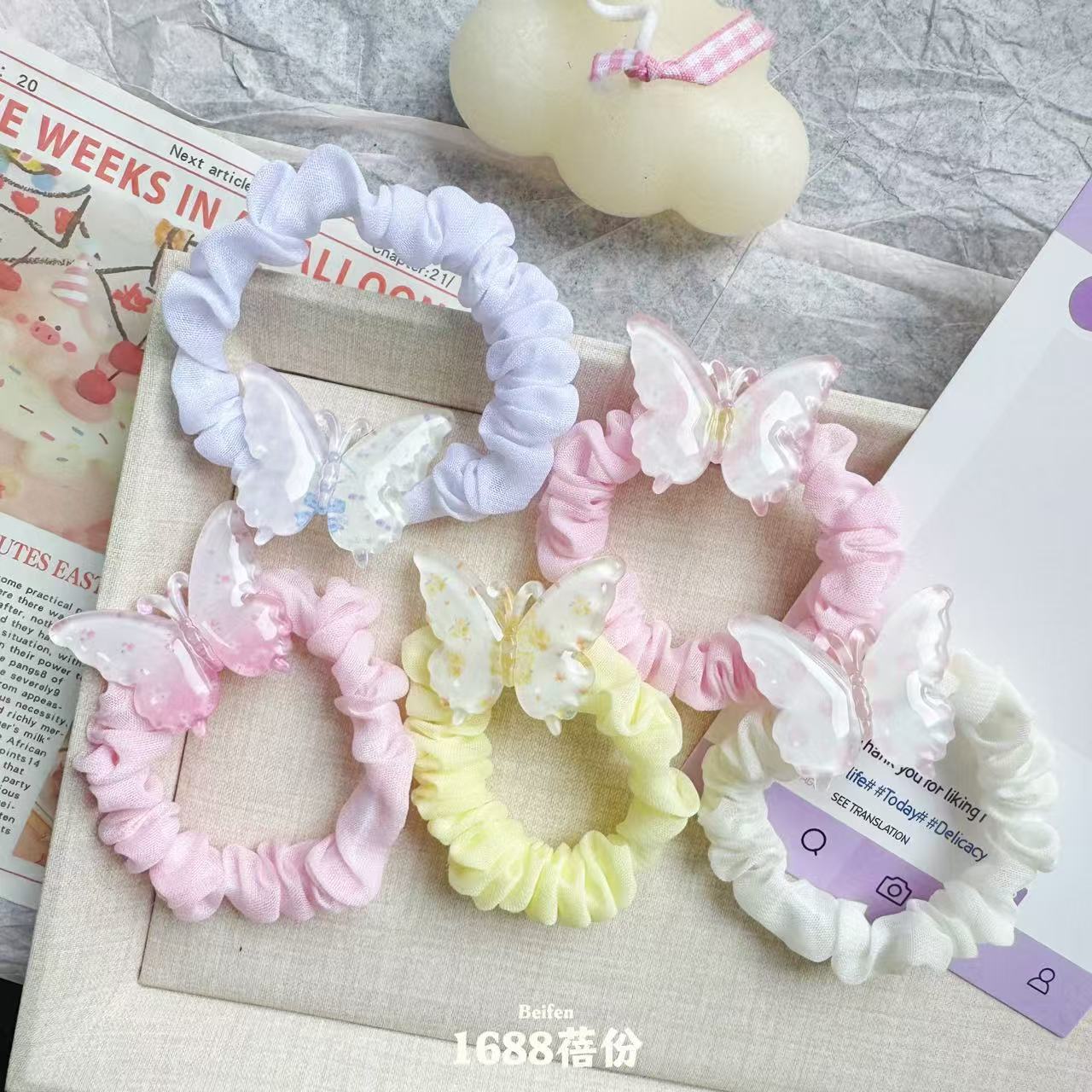ice through butterfly small intestine ring [light pink]