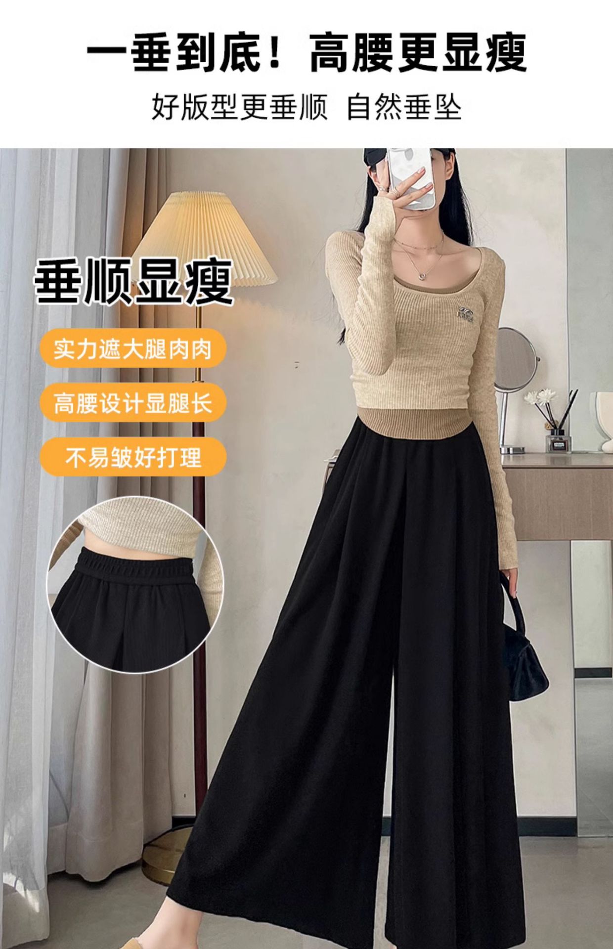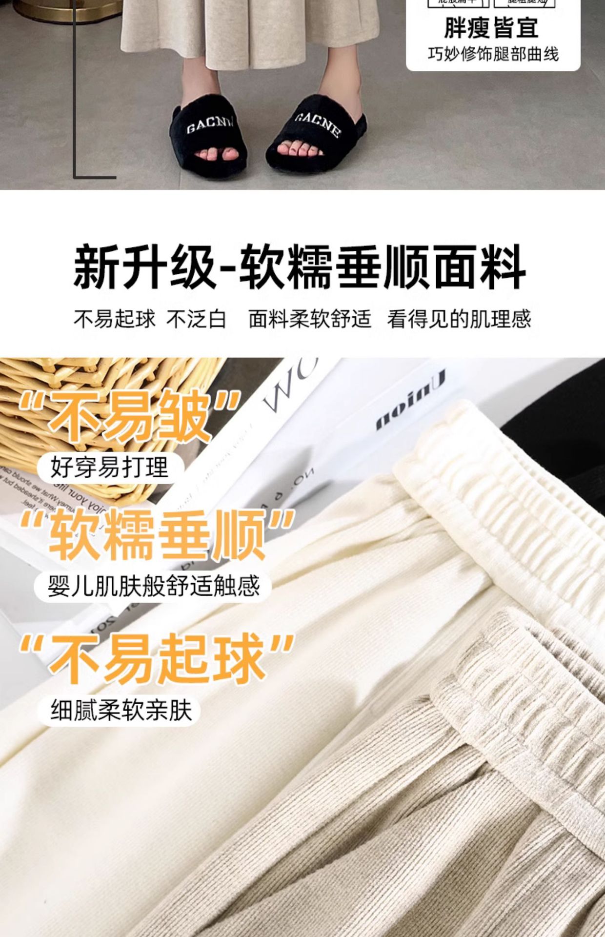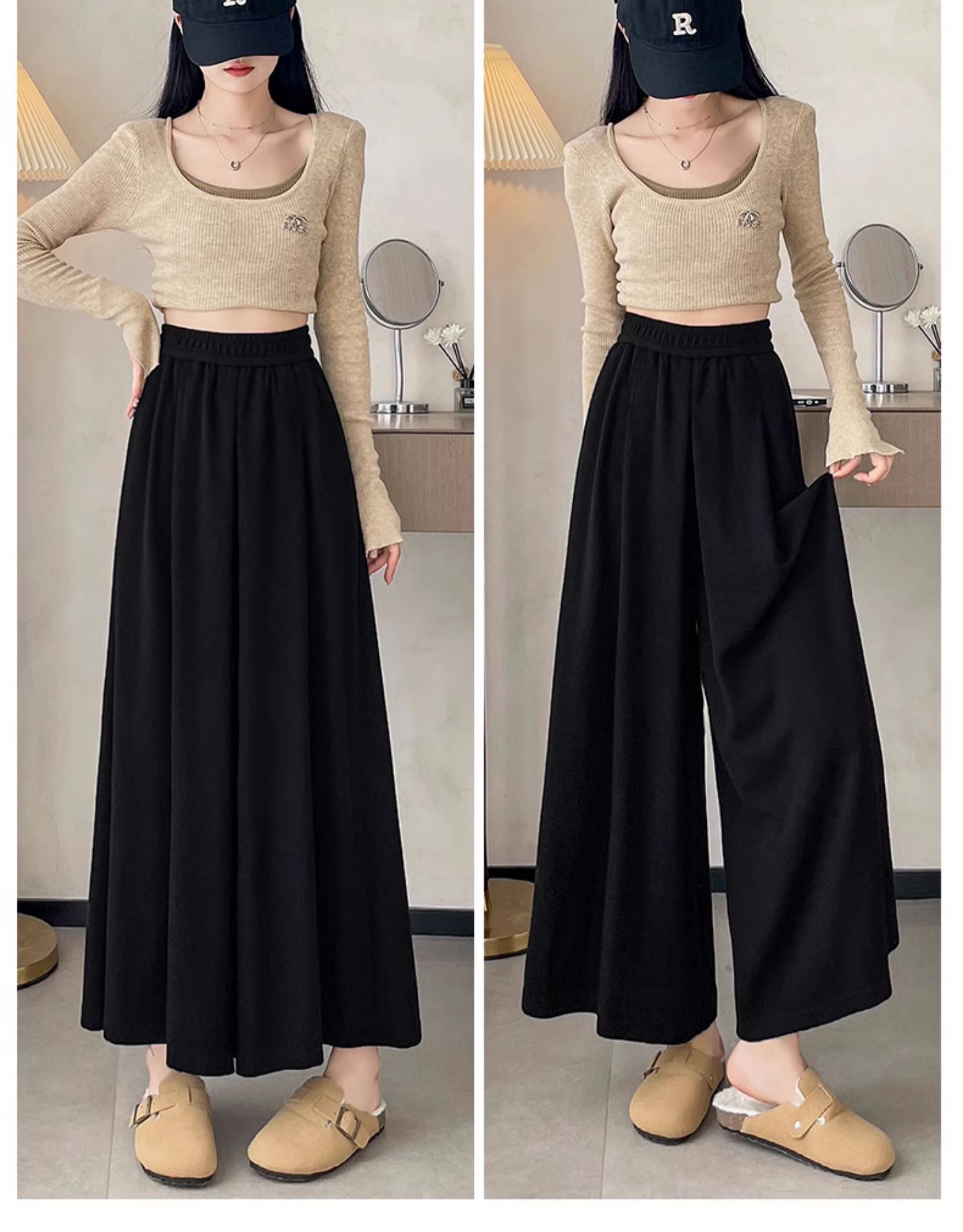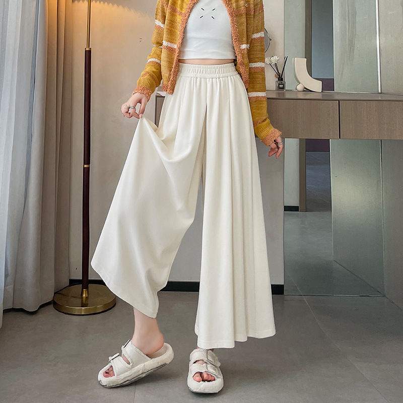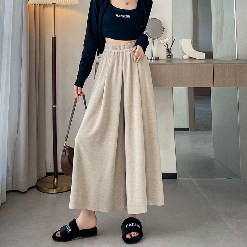 soft glutinous 2025 plus size wide-leg pants slim spring and autumn flab hiding loose casual pants women's straight high waist straight skort
