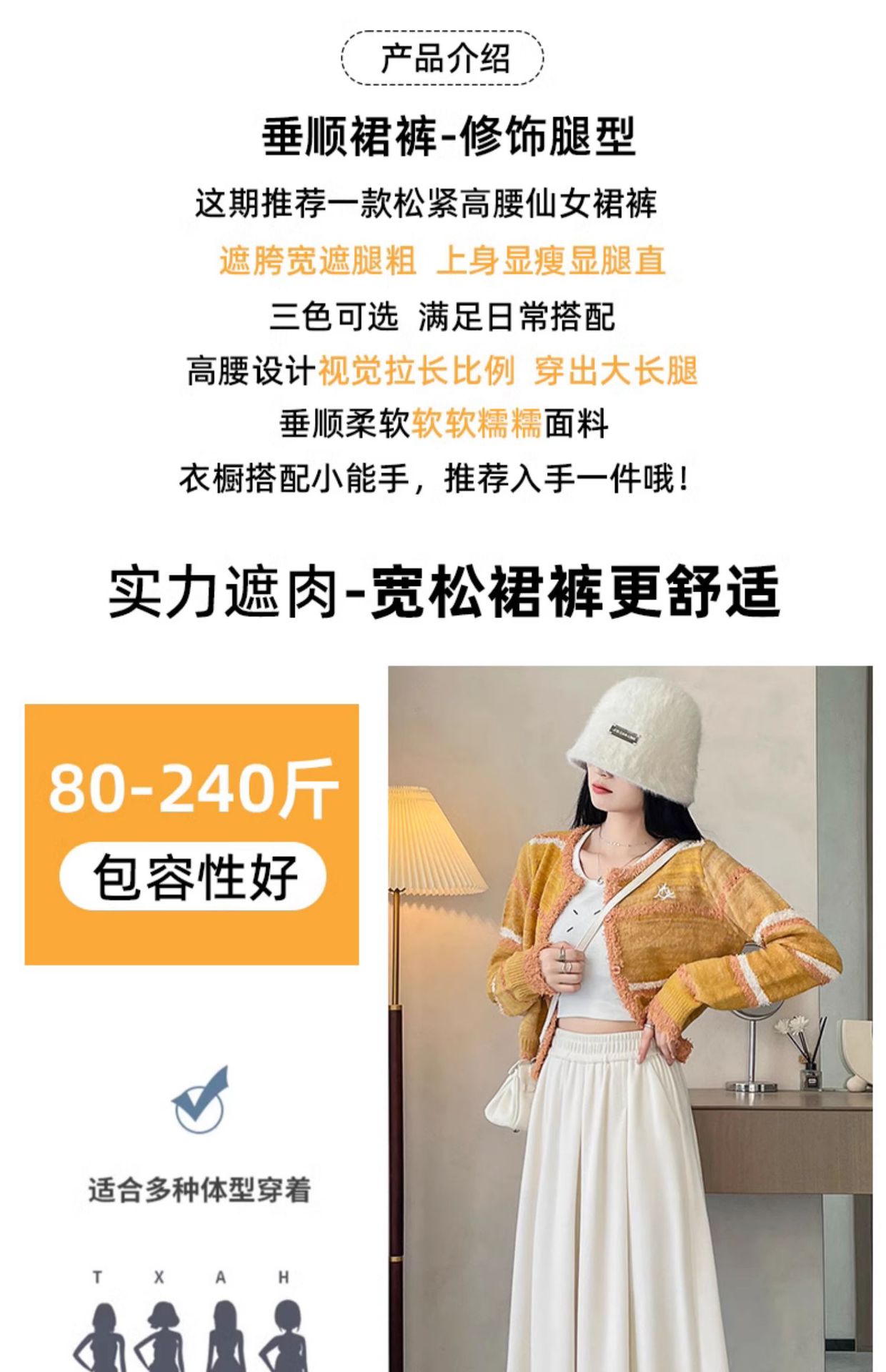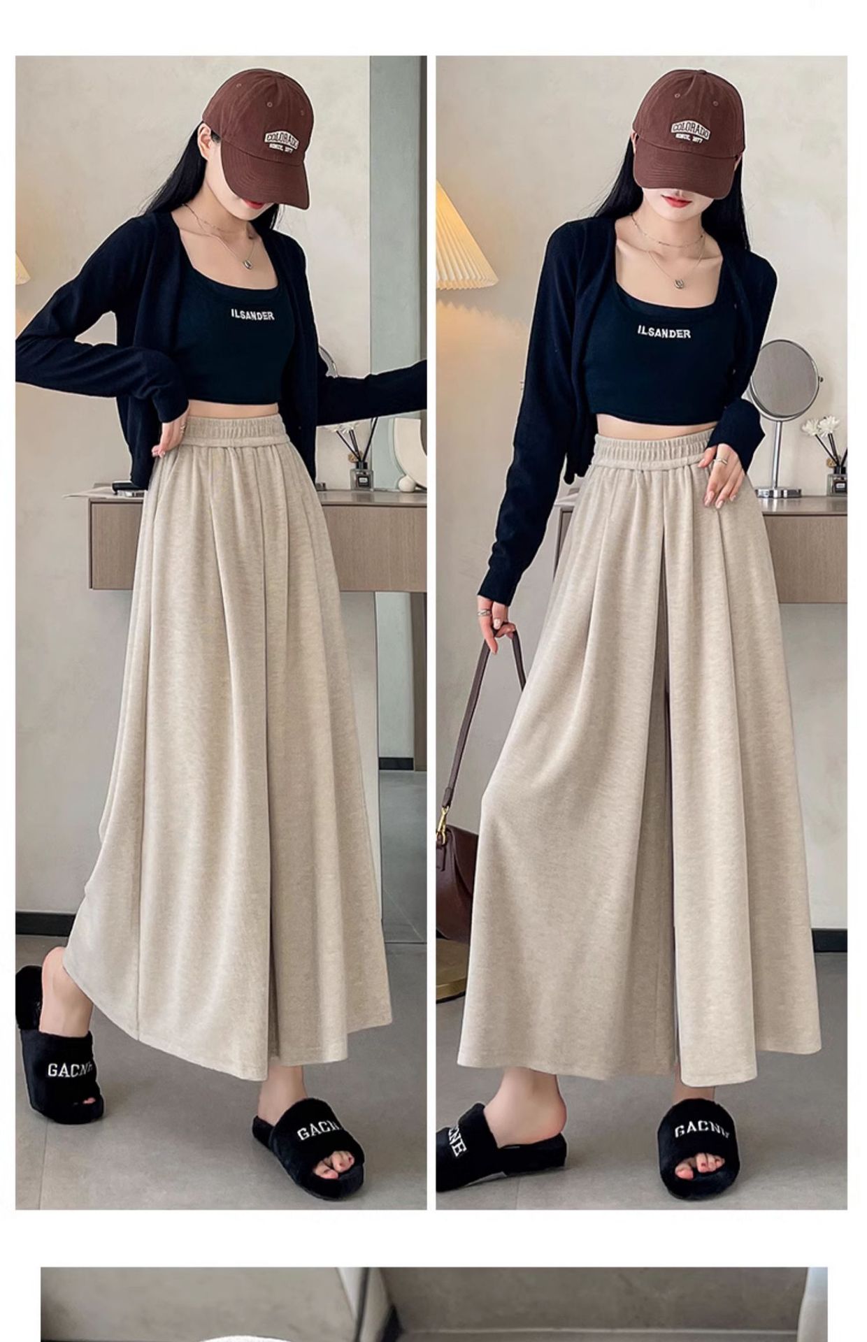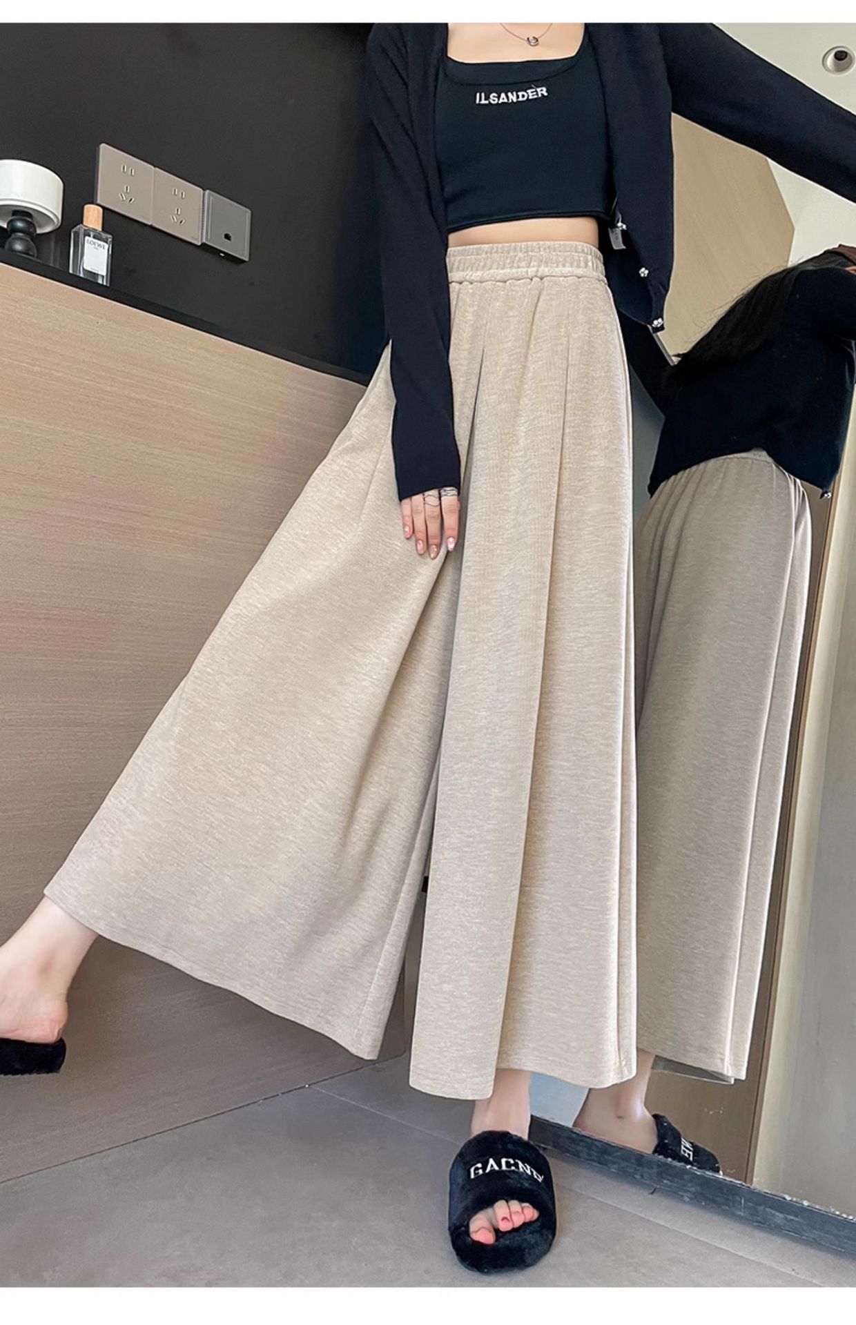 soft glutinous 2025 plus size wide-leg pants slim spring and autumn flab hiding loose casual pants women's straight high waist straight skort
