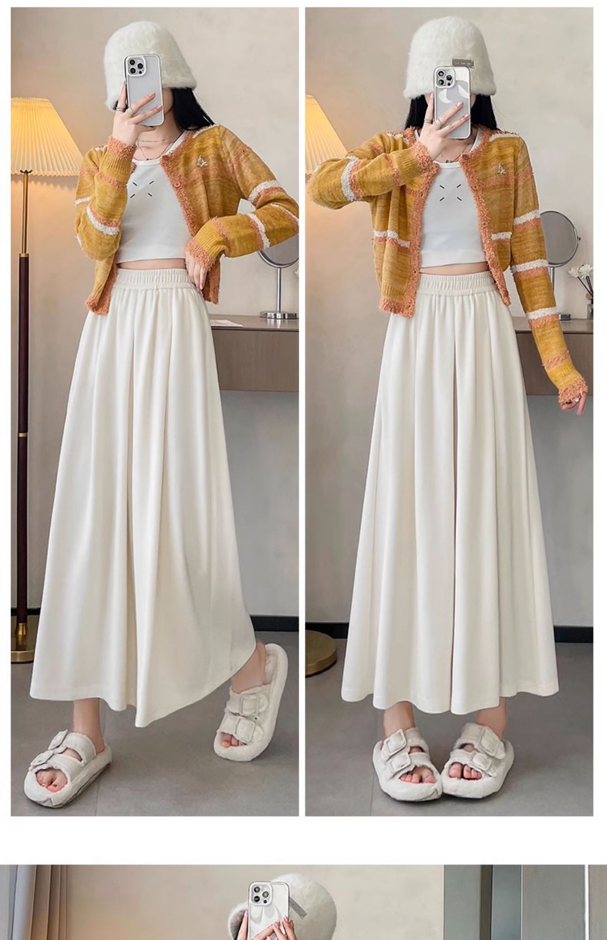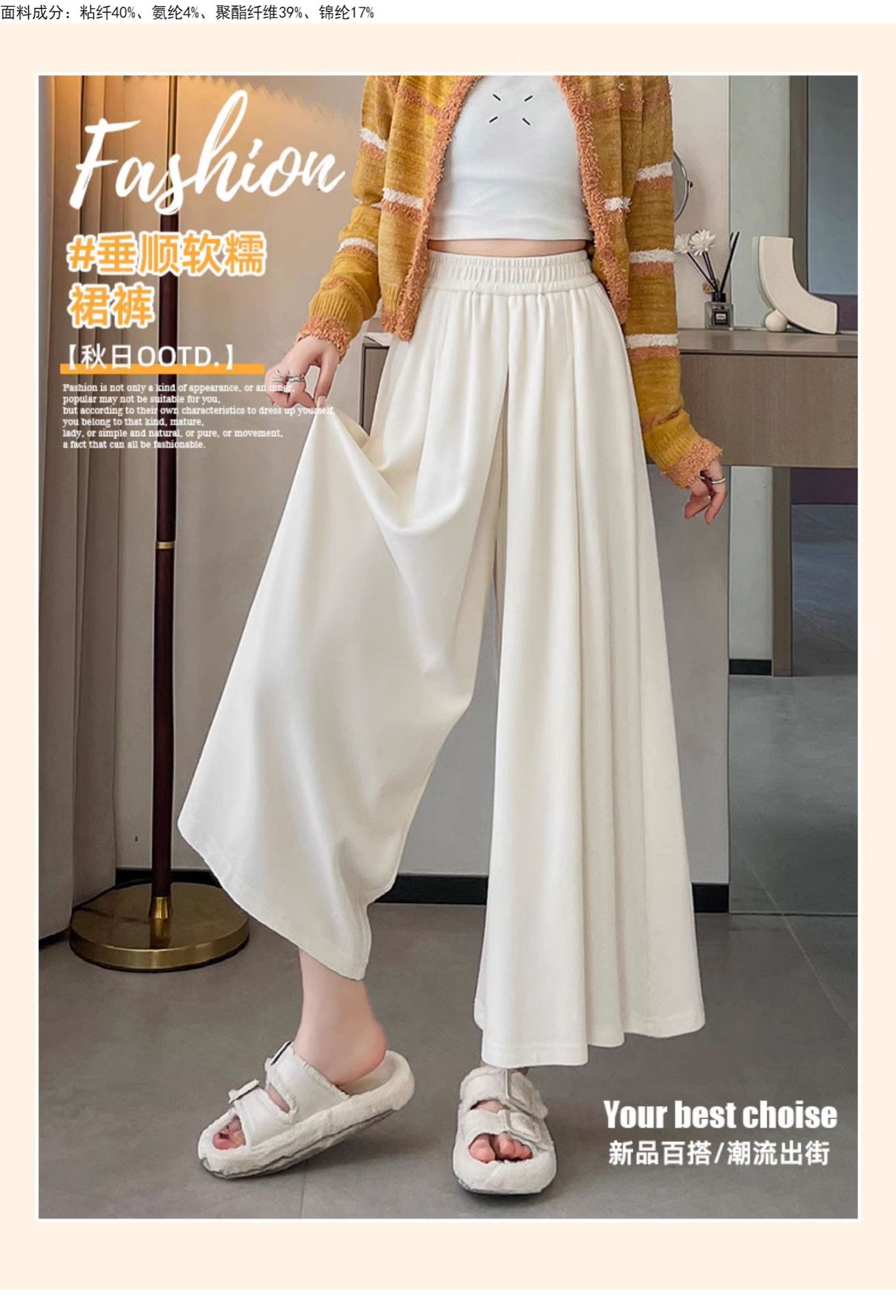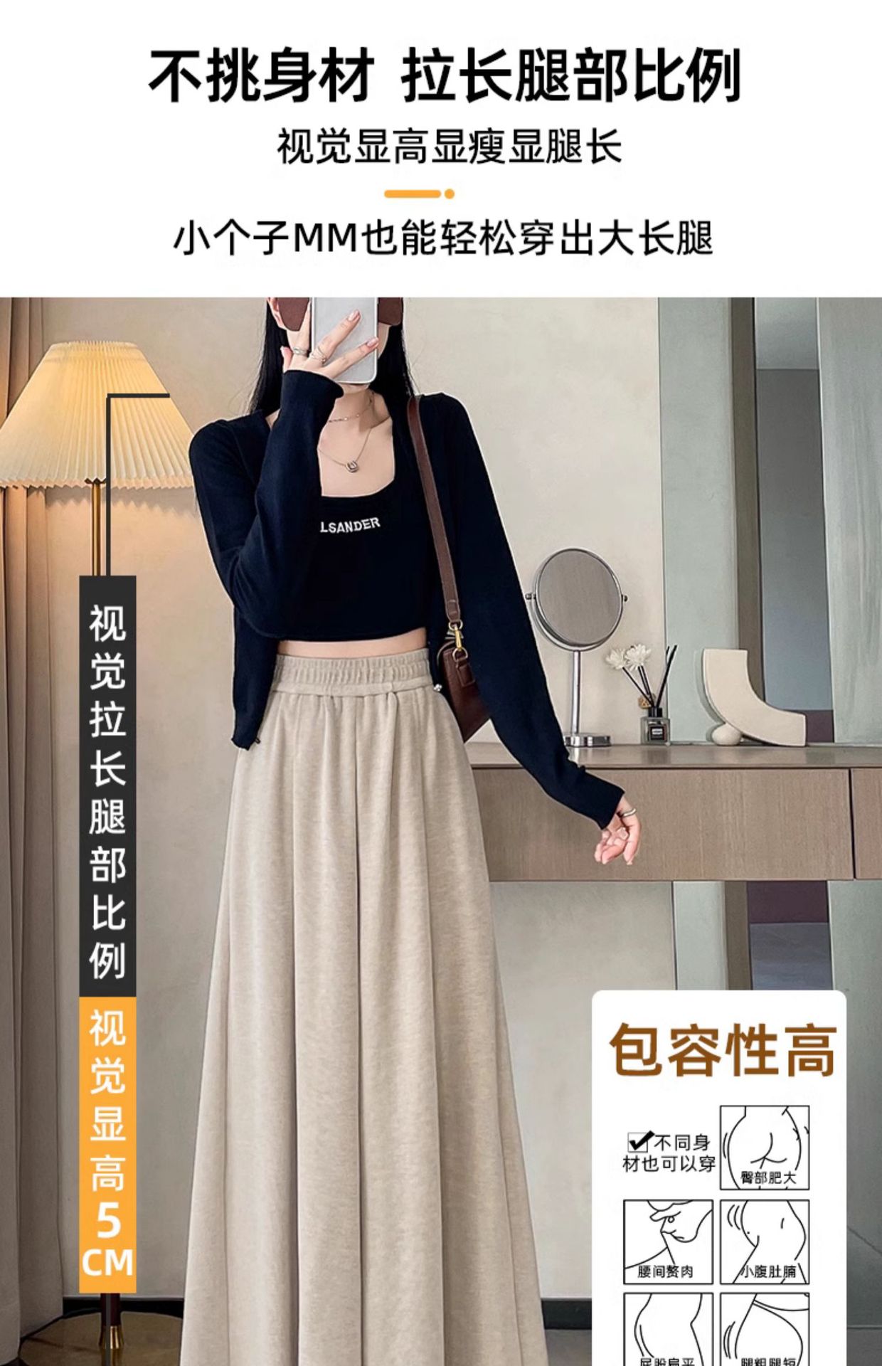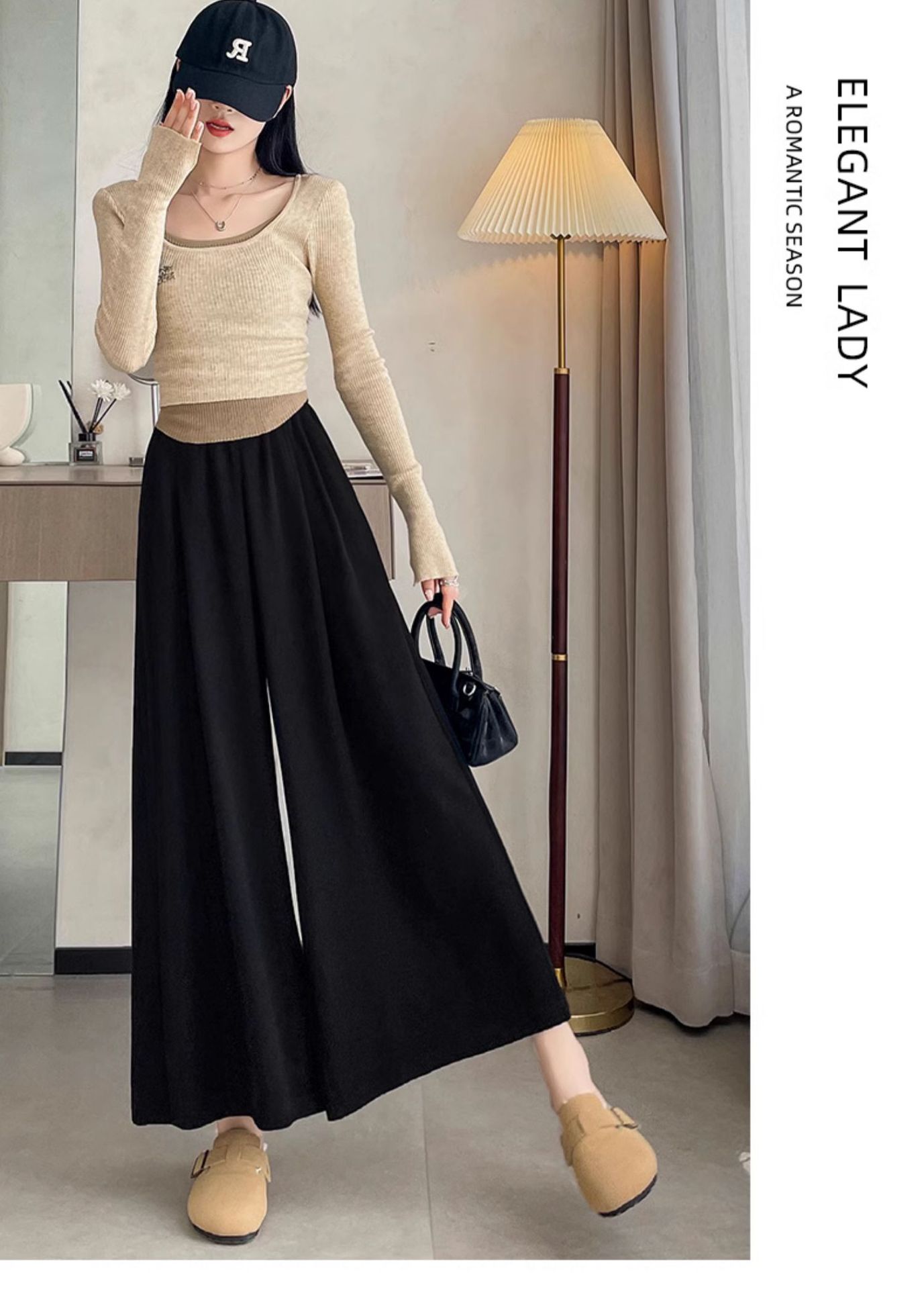 soft glutinous 2025 plus size wide-leg pants slim spring and autumn flab hiding loose casual pants women's straight high waist straight skort