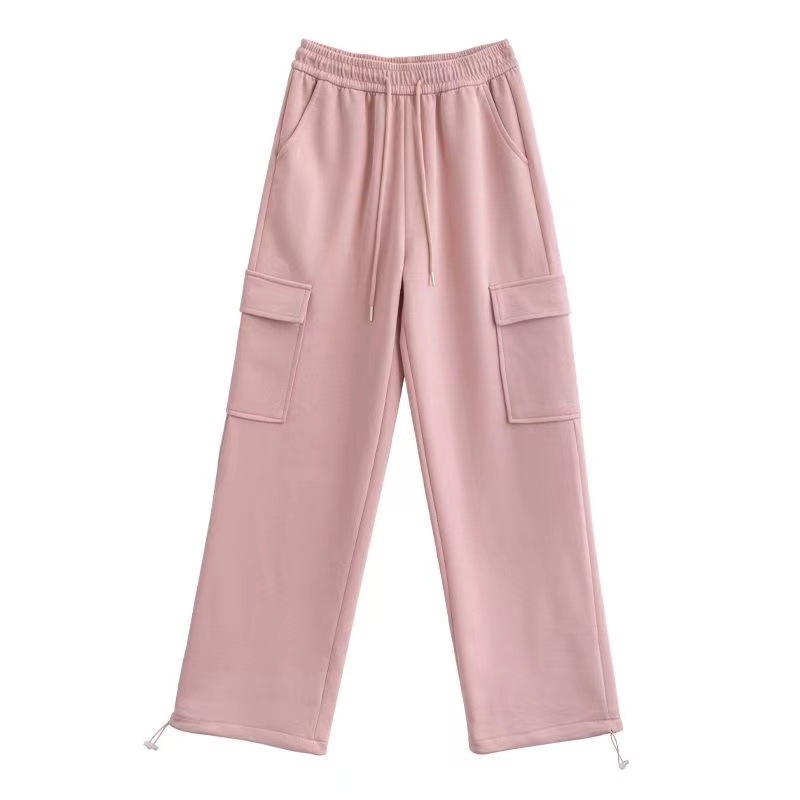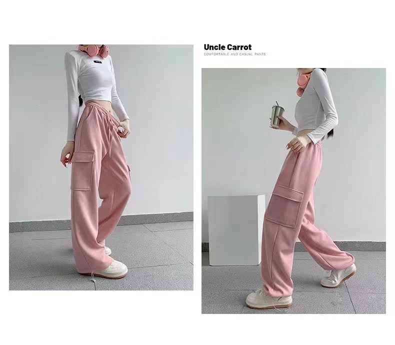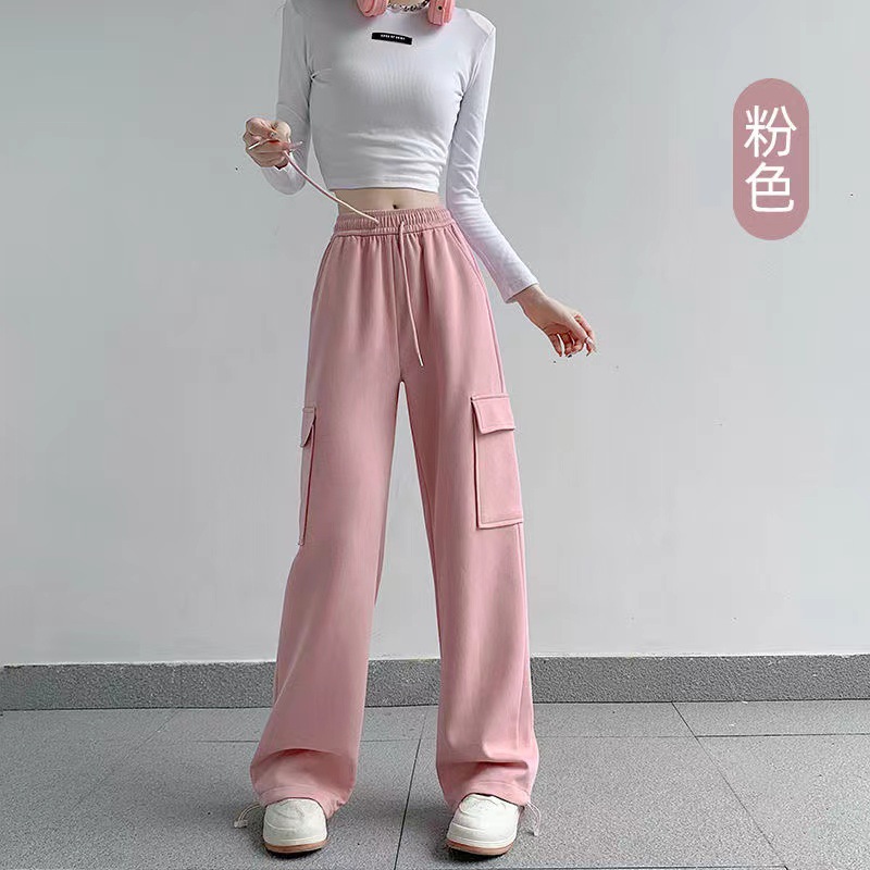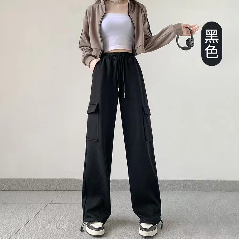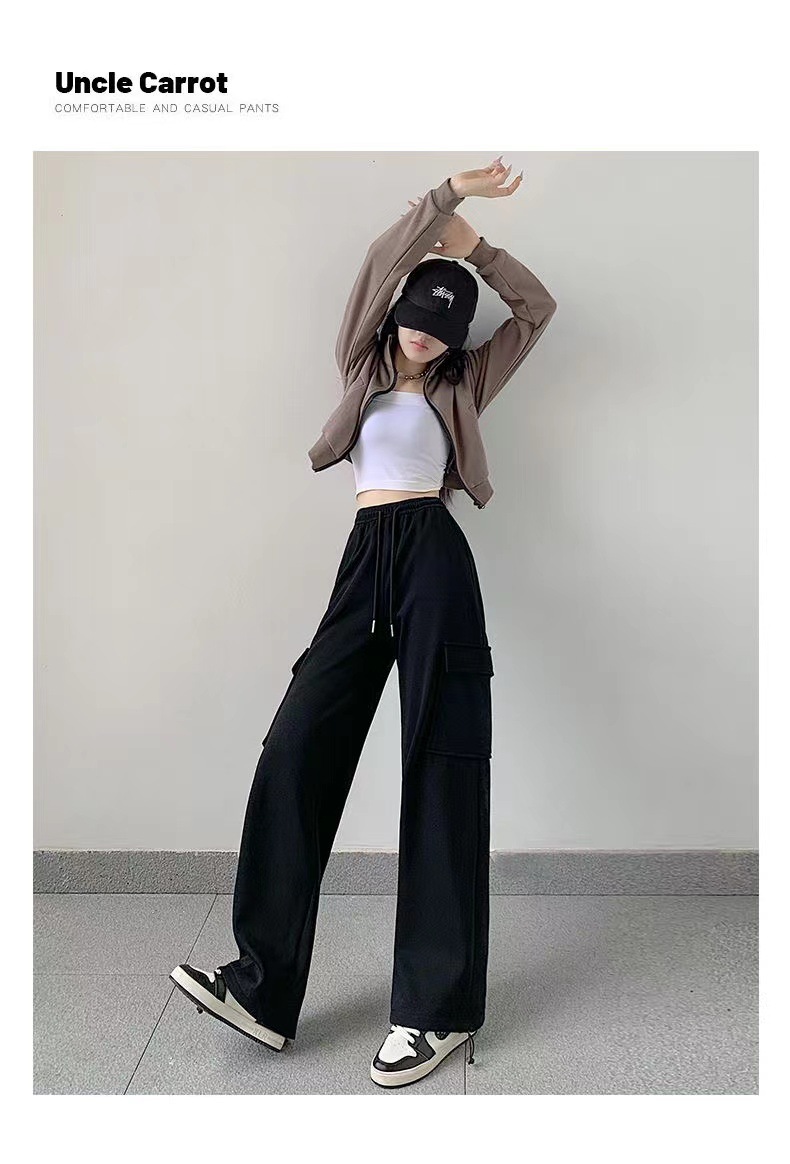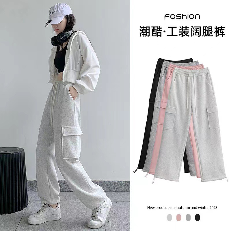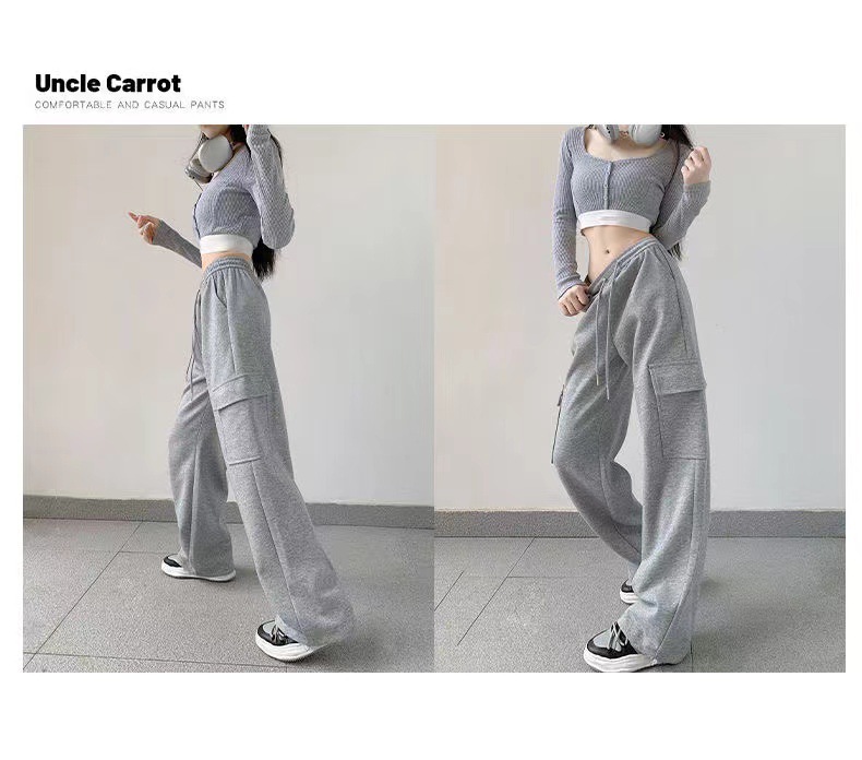 large pocket sports pants female spring and autumn new casual loose high waist slimming gray ankle-tied sweatpants american overalls