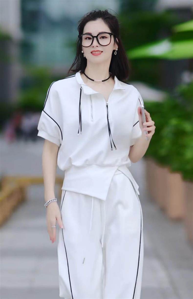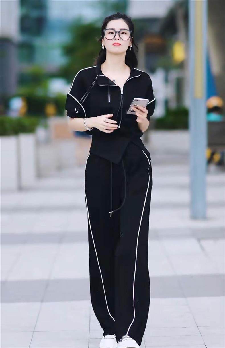 casual suit women's summer 2025 new western style fashion short-sleeved shirt wide-leg pants sports versatile two-piece set tide