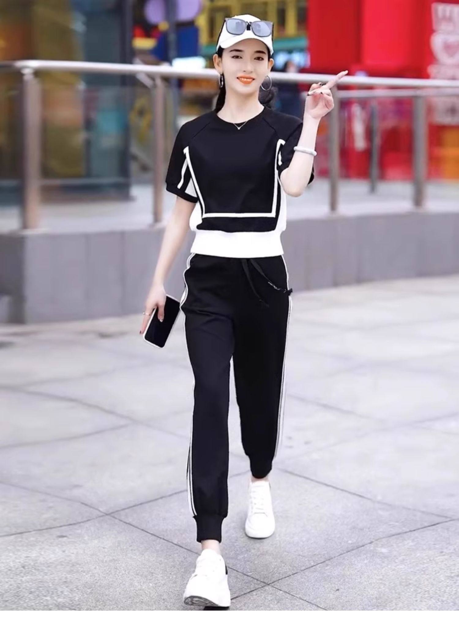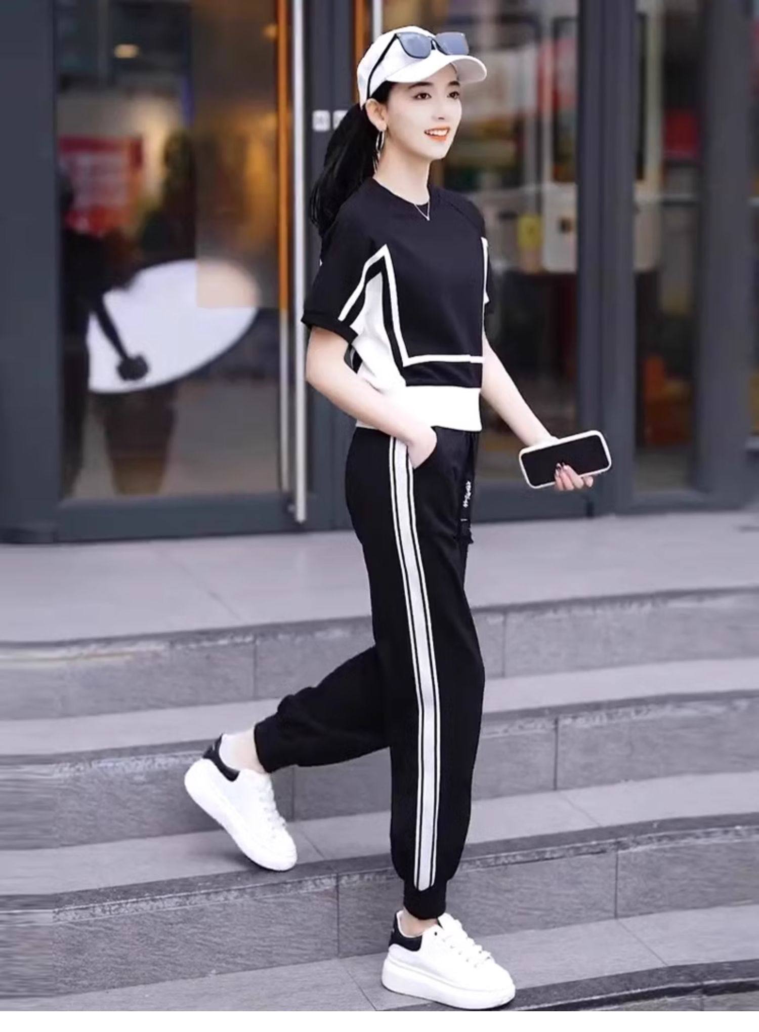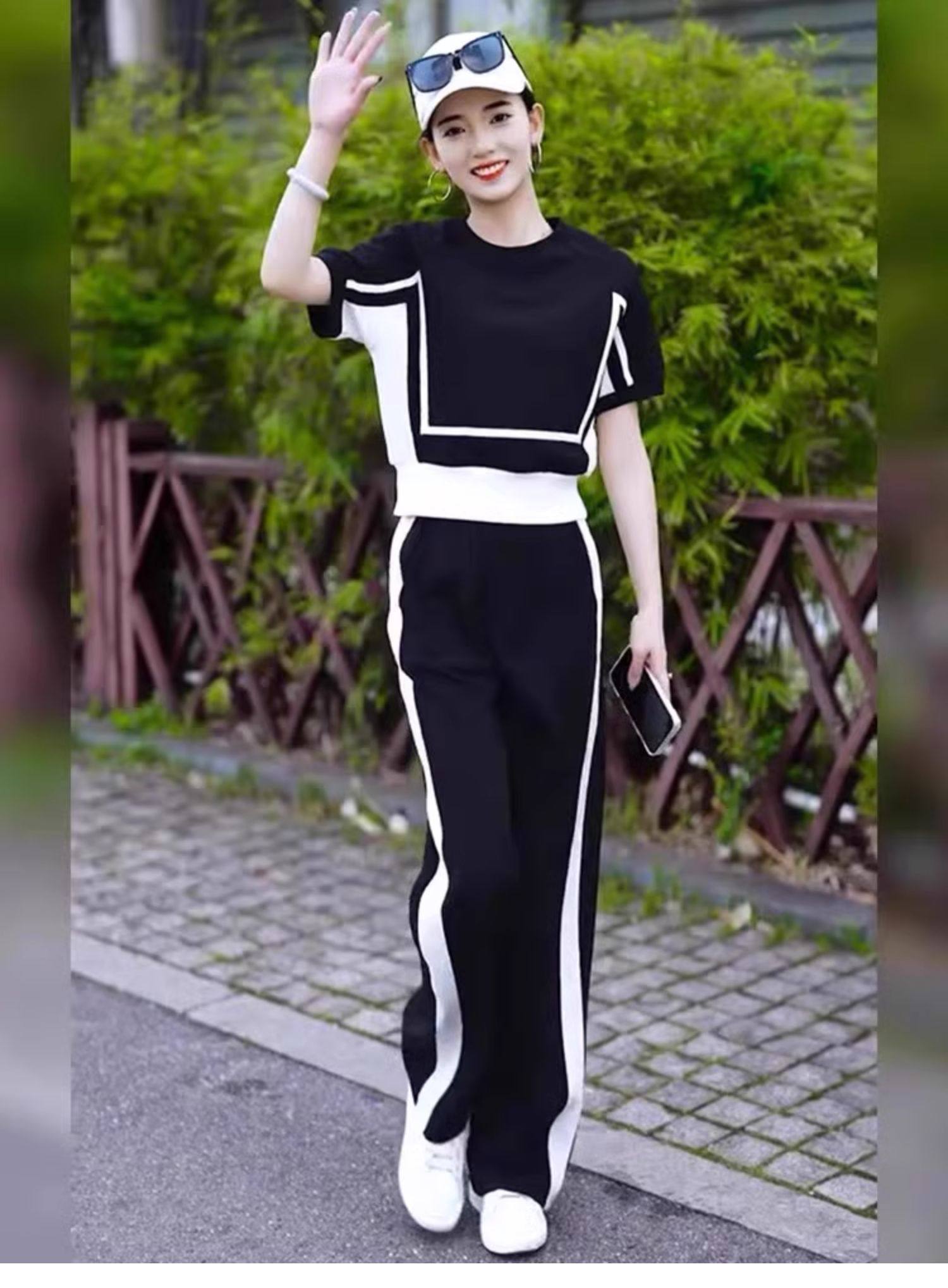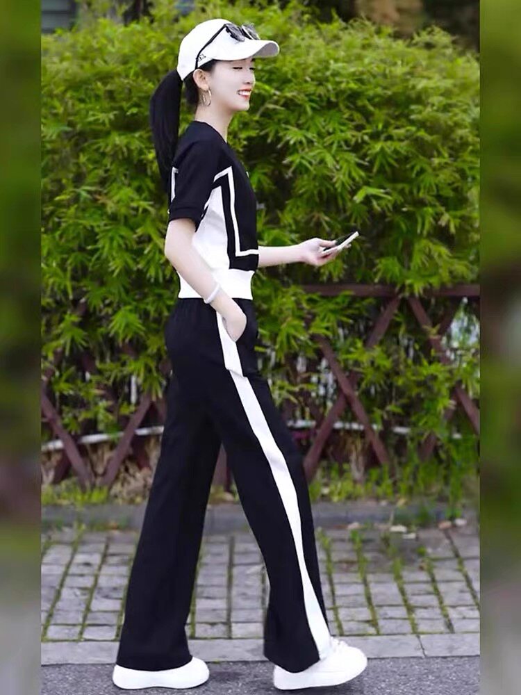 european goods fashion casual exercise suit women's summer 2025 new western style wide-leg pants short sleeve salt two-piece suit fashion