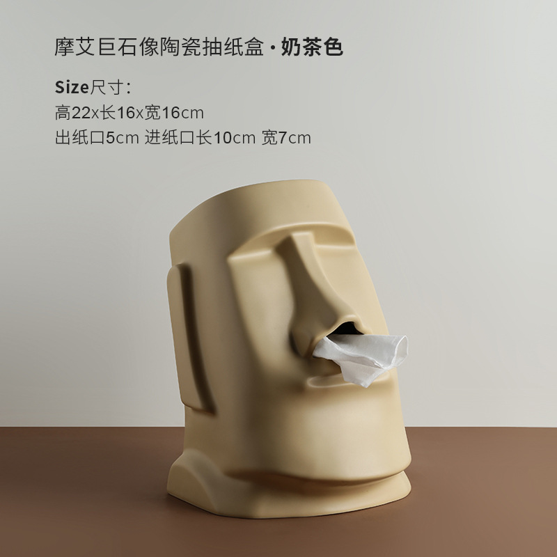 stone statue paper extraction box (milk tea color)