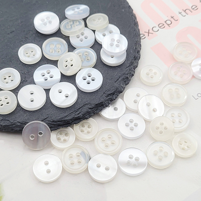 thin edges wide-brimmed t-shirt cardigan white button resin button two-eye four-eye flat corrugated pearl shirt button
