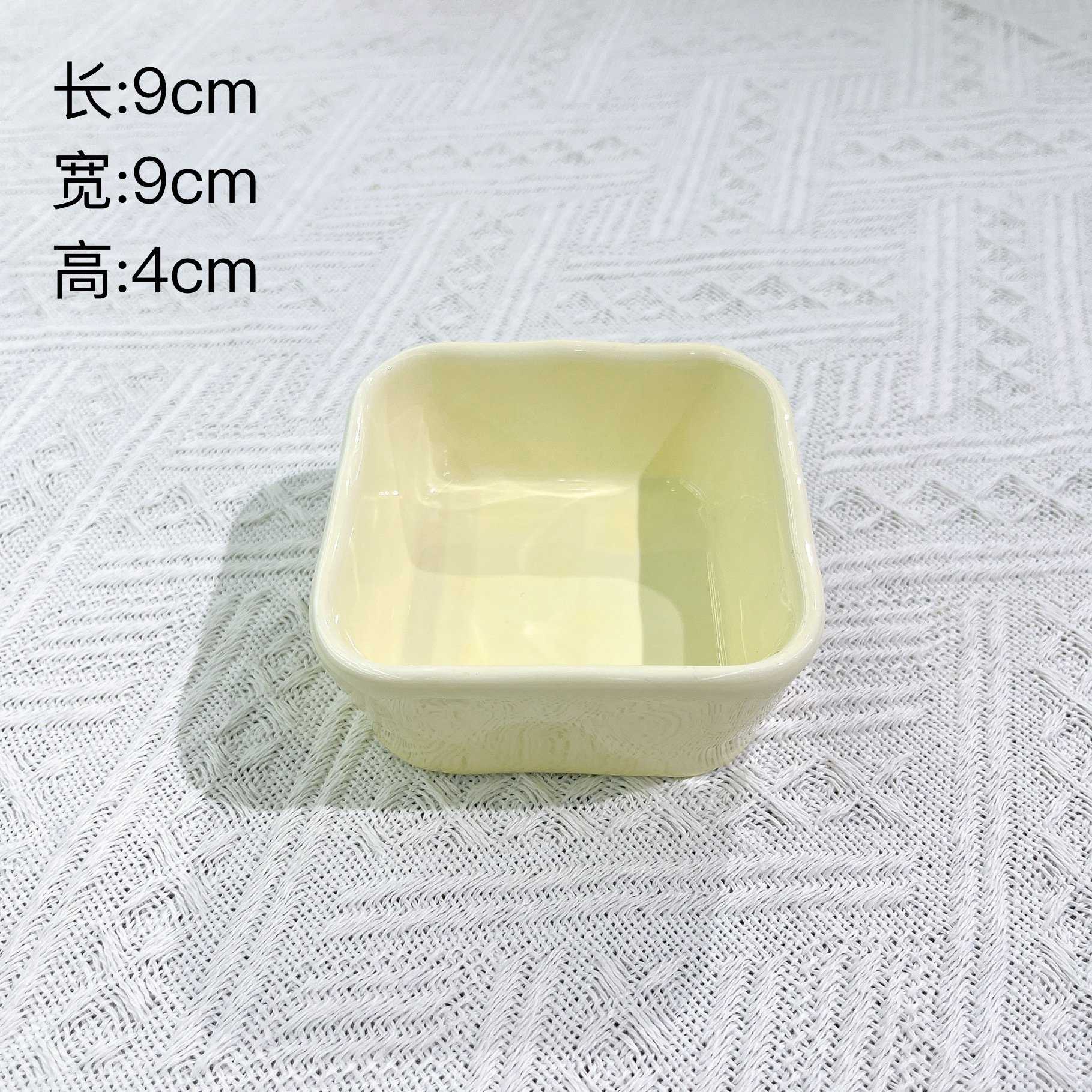 cream light yellow 3.5 hand pinch square sauce dish 15/box