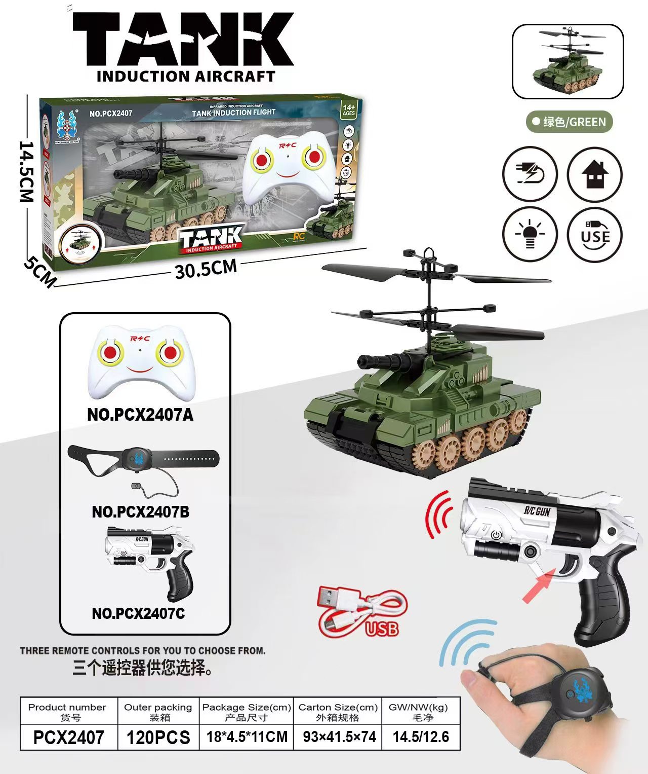 tank aircraft + data cable + watch remote control