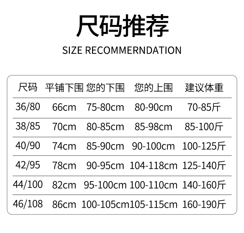 | size 46 [85.00 kg-100.00 kg recommended to wear]] | CN¥ 49.03 | 999999 piece available |