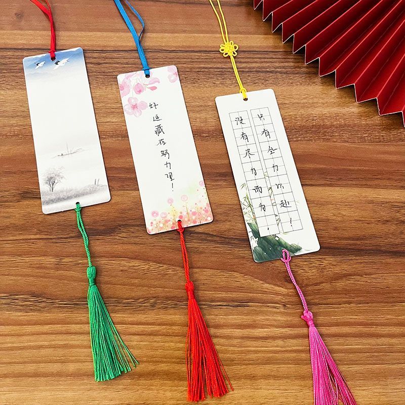 white card bookmark 24 + red tassel