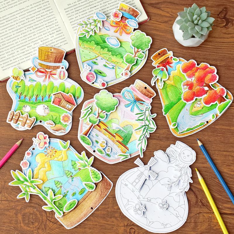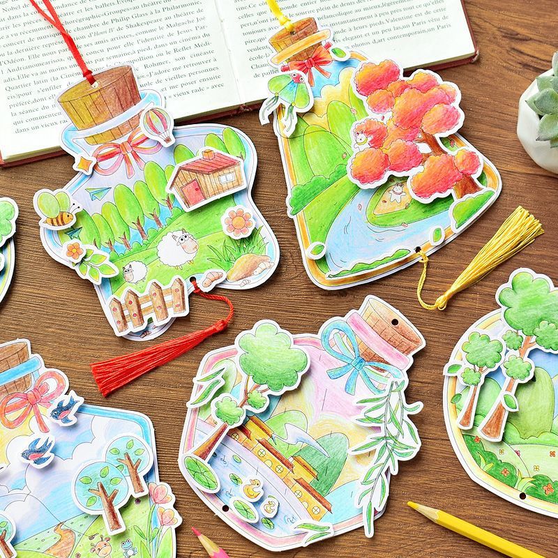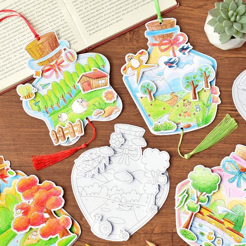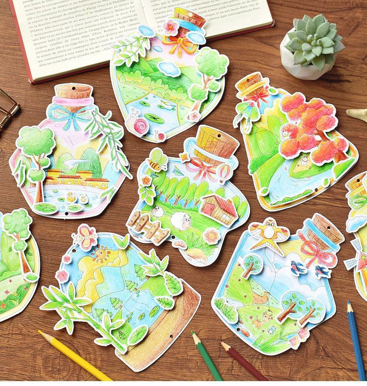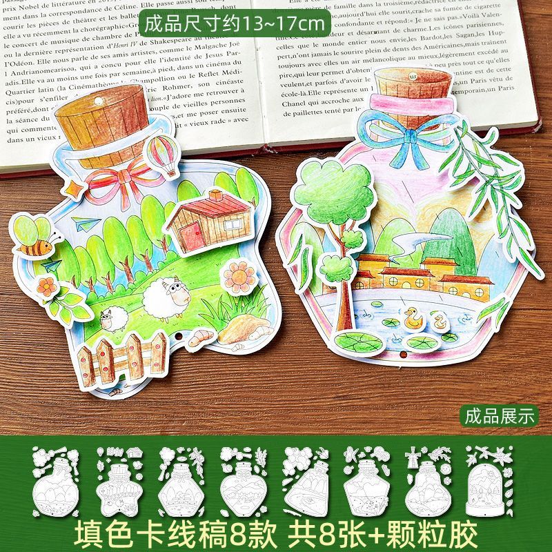 8 spring color filling cards in the bottle + pimpled rubber + ribbon + tassel