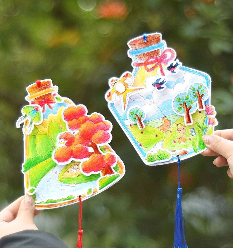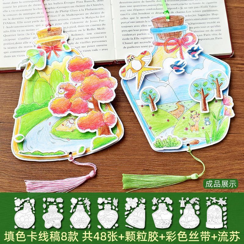 48 spring color filling cards in the bottle + pimpled rubber + ribbon + tassel