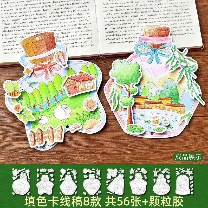 56 spring color filling cards in the bottle + pimpled rubber + ribbon + tassel