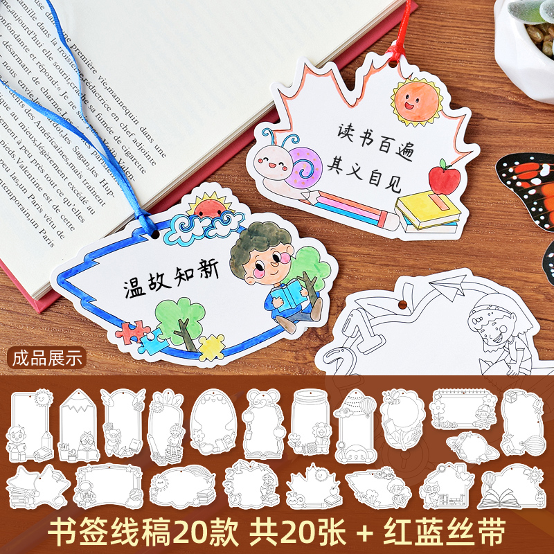 ...❥20 color-filled bookmarks + ribbon