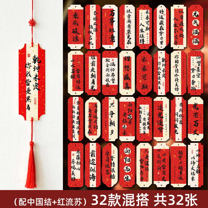 32 bookmarks + red tassel + chinese knot