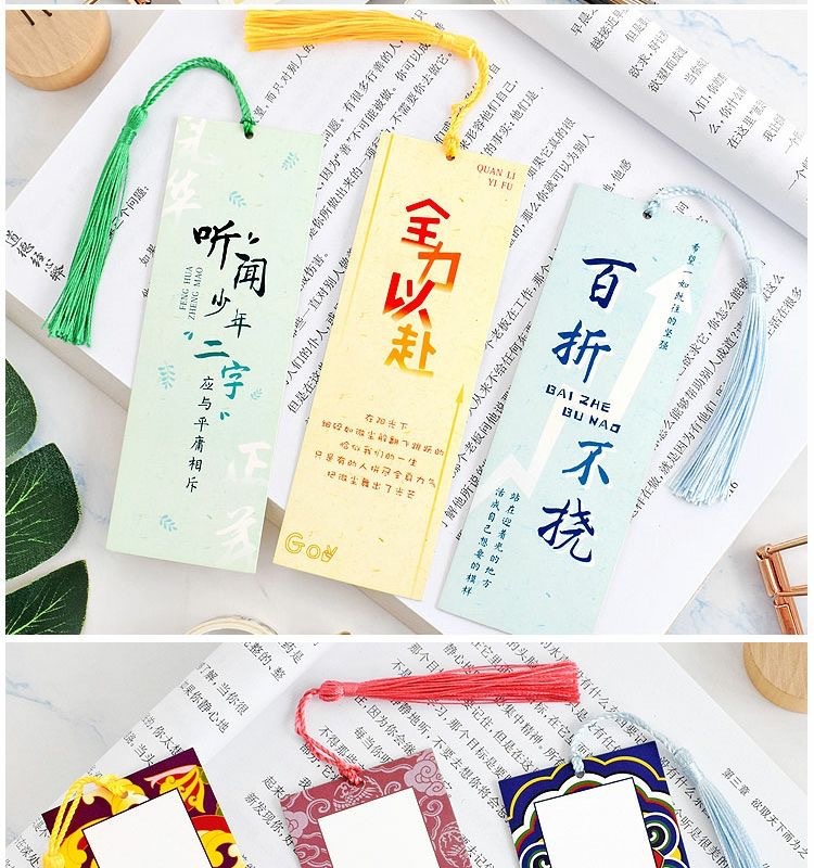 5 inspirational bookmarks + punch +5 tassels