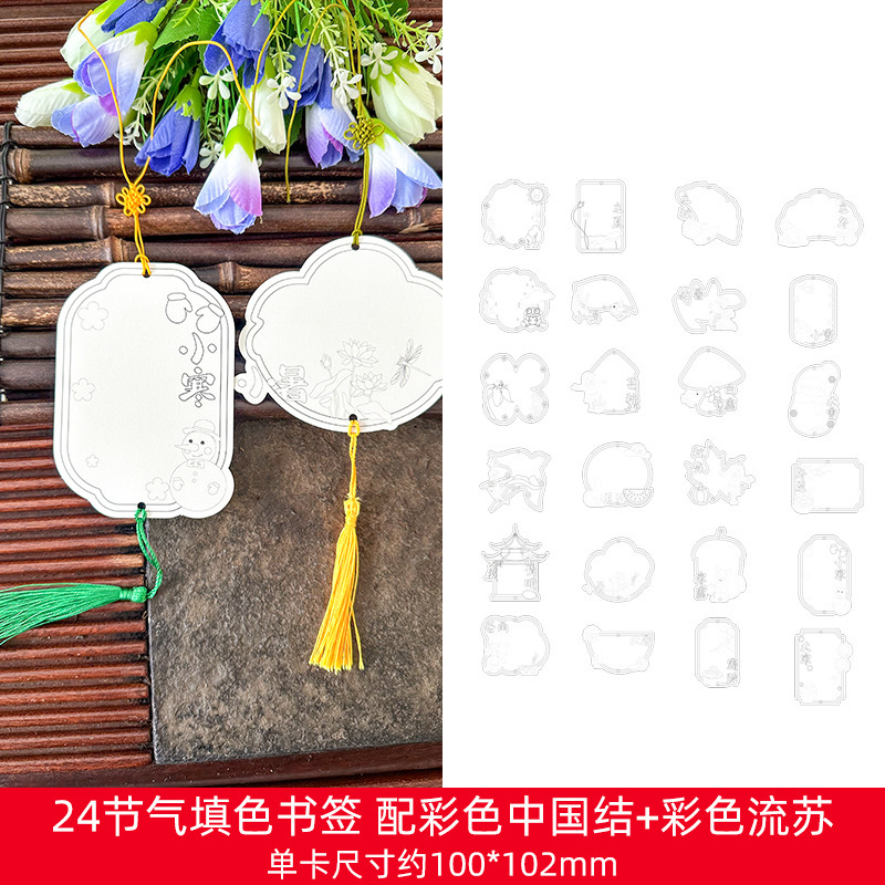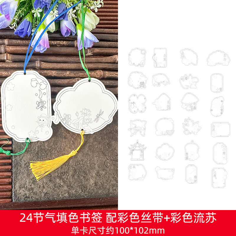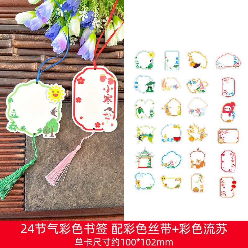 ❥♥❣❤24 solar terms series coloring bookmarks 24 + multicolored tassel♥❤❣♥