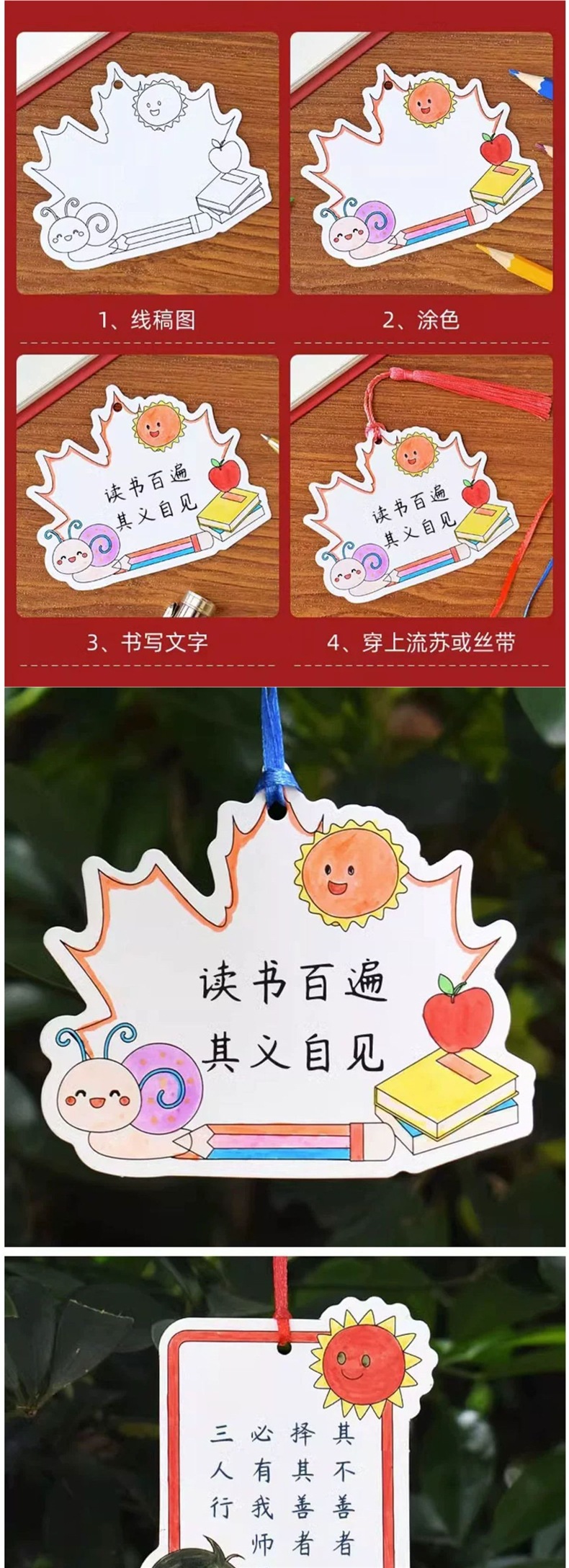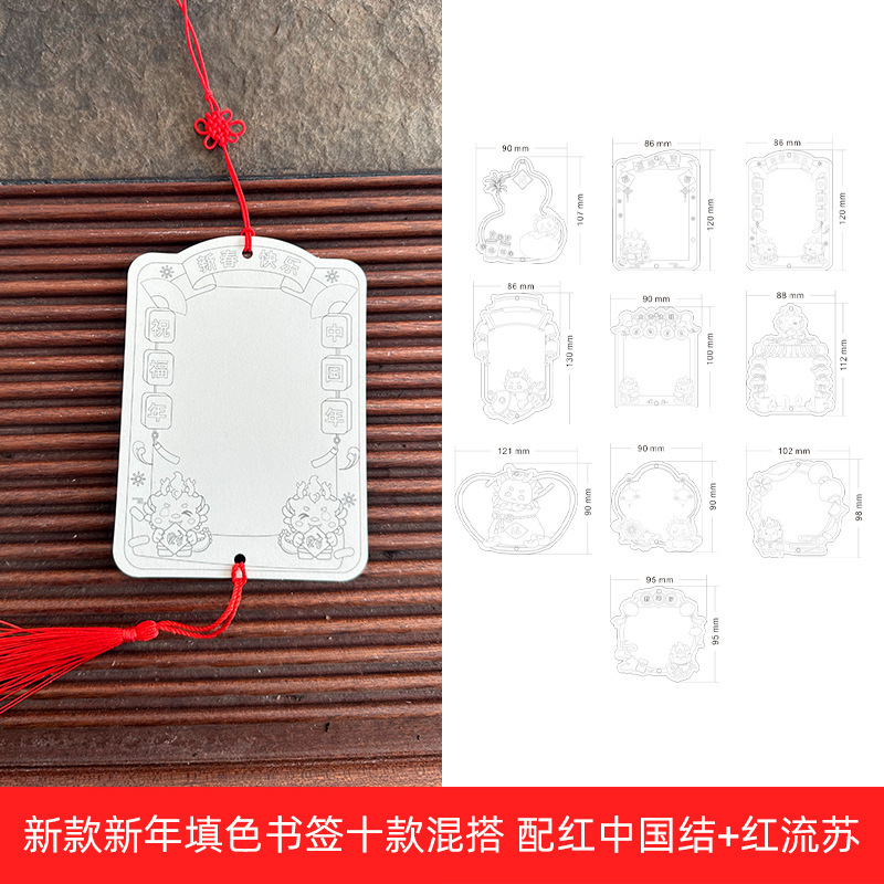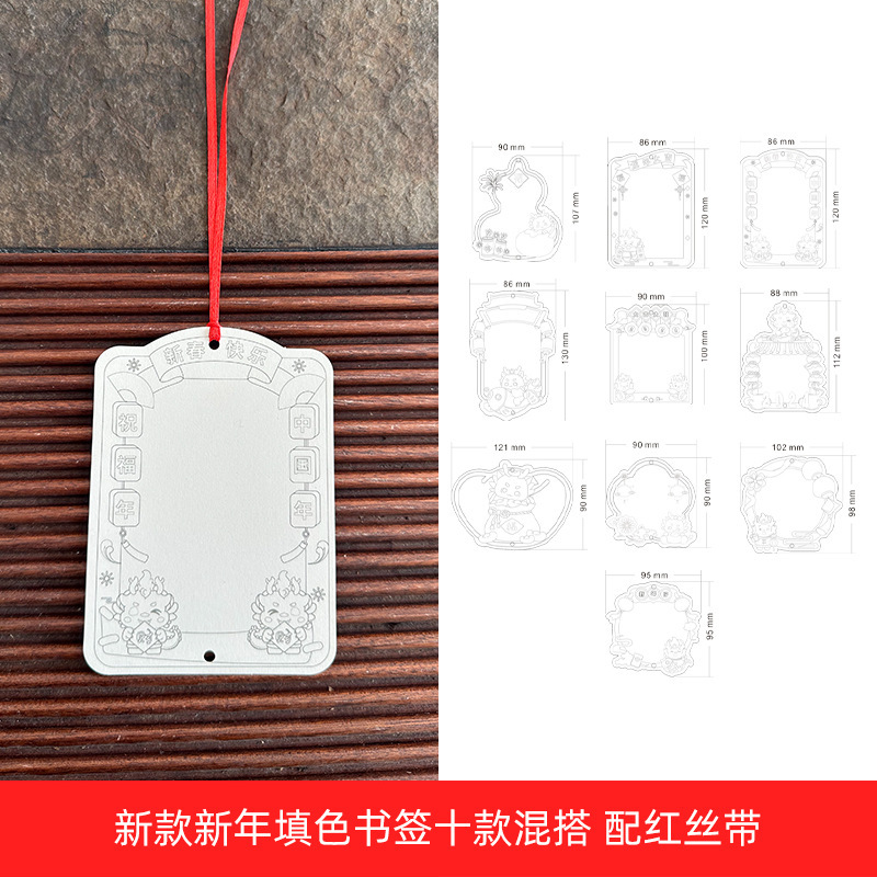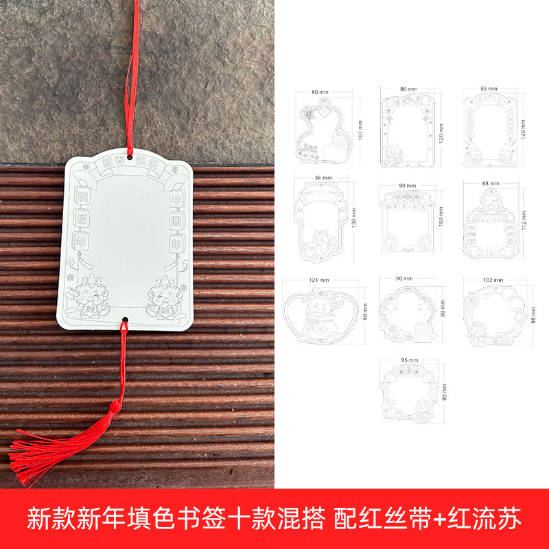 ❥♥❣❤new new year coloring bookmark 10 with red tassel♥❤❣♥
