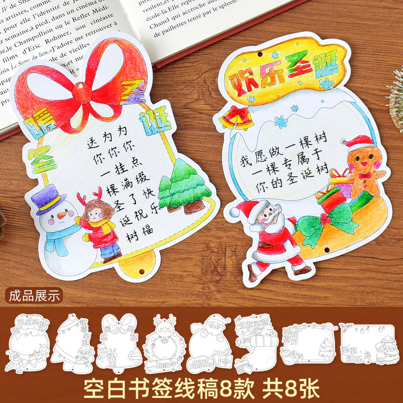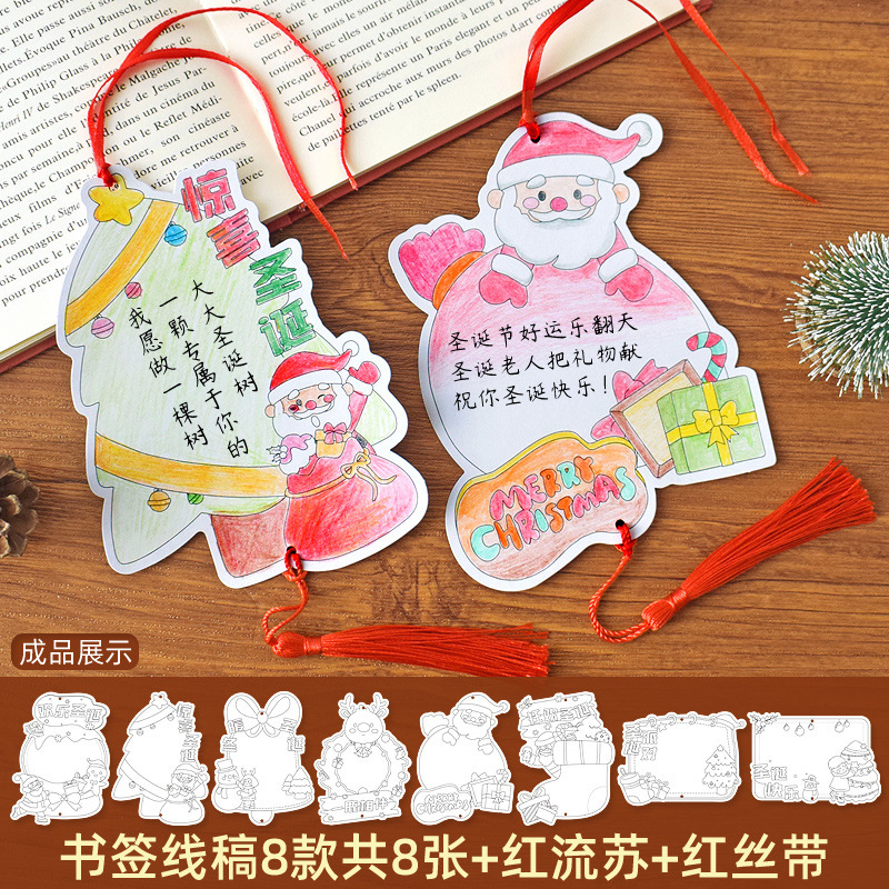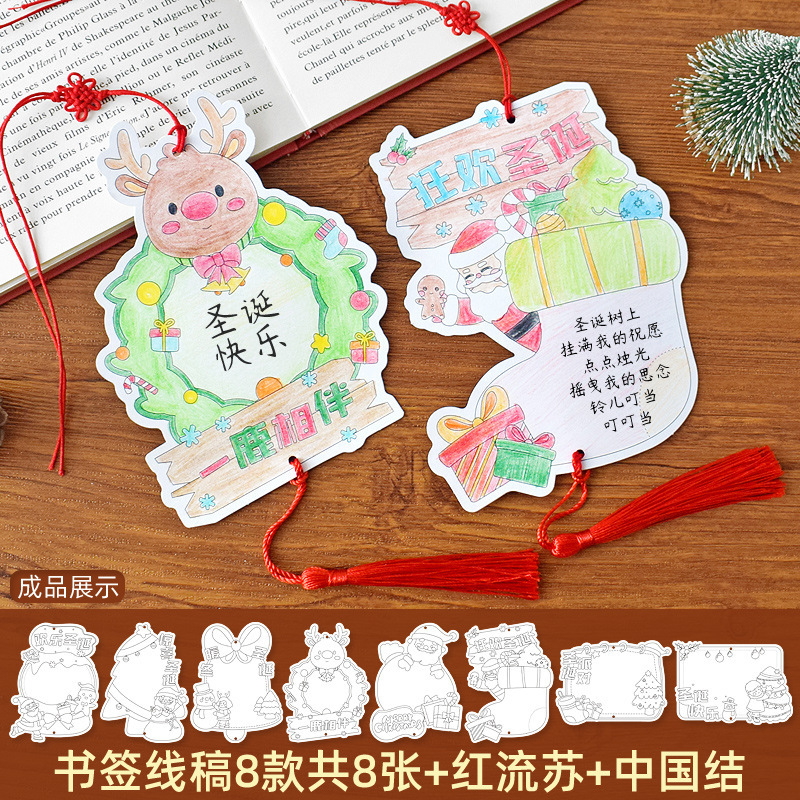 ❥♥❣❤happy christmas coloring bookmark 8 + tassel + chinese knot♥❤❣♥