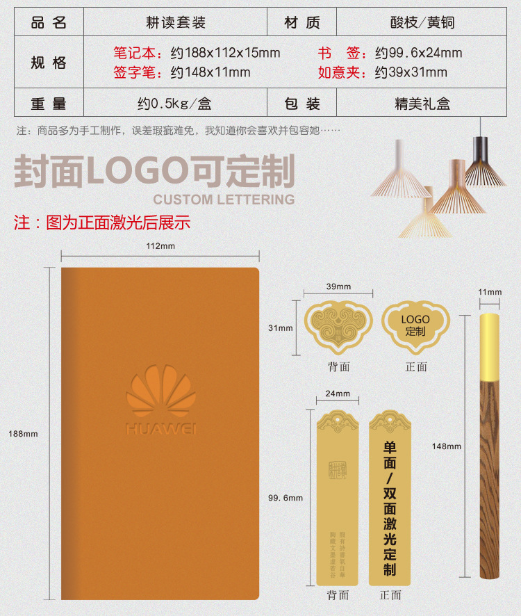 notebook + metal bookmark two-piece set