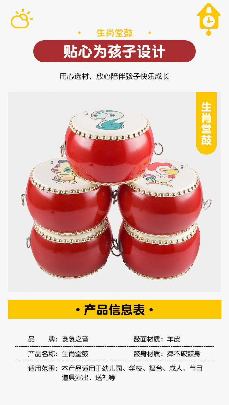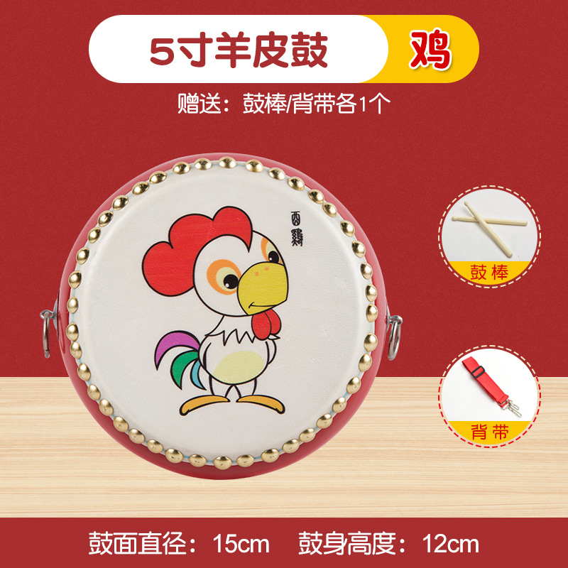5-inch zodiac drum + drumstick + strap + small cymbals + small gong