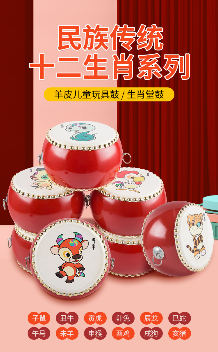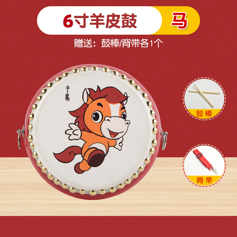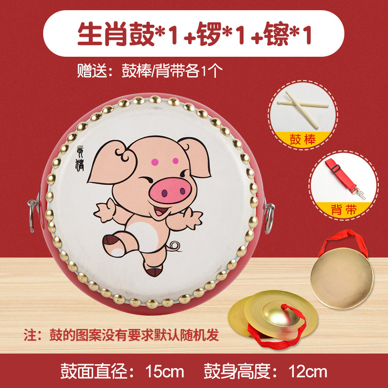 6-inch zodiac drum + drumstick + strap + small cymbals + small gong