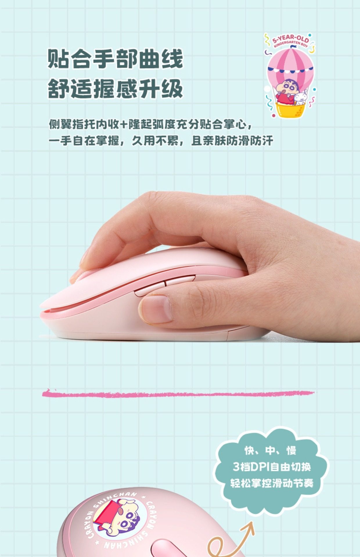 wireless mouse [pink] skin-friendly non-slip★2.4g wireless★3-speed dpi switching