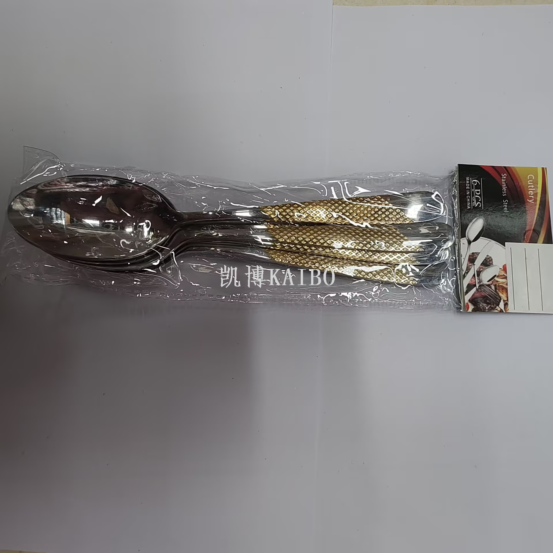 | 330115 Star Diamond Water-Coated Gold Spoon with 410 Steel Material | 600 pieces/100 bags | 20.3*4 | 46.5g |