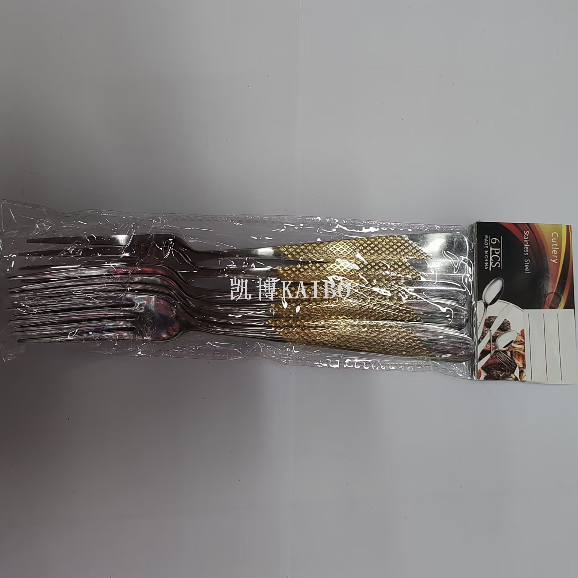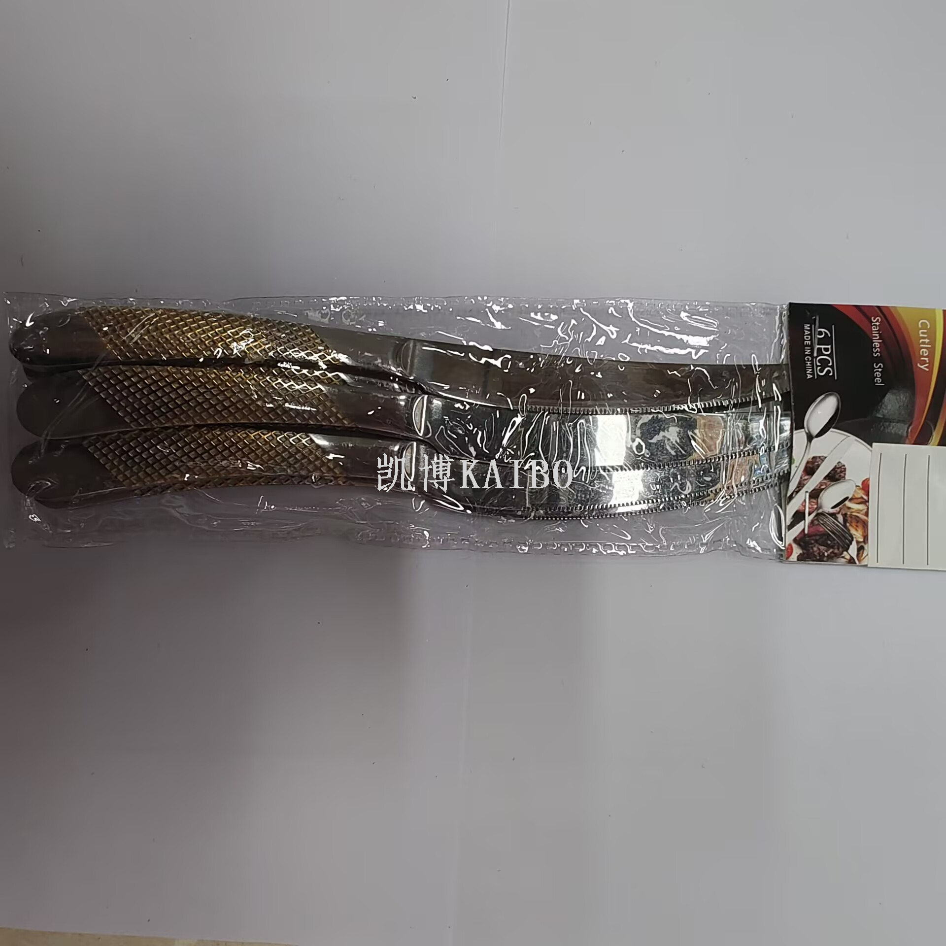 | 330113 Star Diamond Water-Coated Gold Cutlery with 410 Steel | 600 pieces/100 bags | 23 times 2" 或者 "23 multiplied by 2 | 59g |