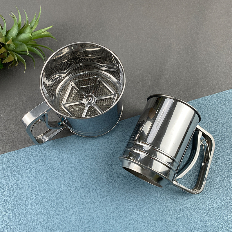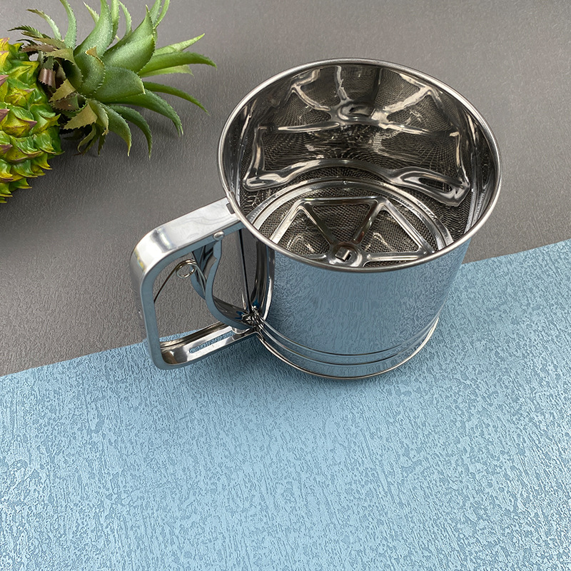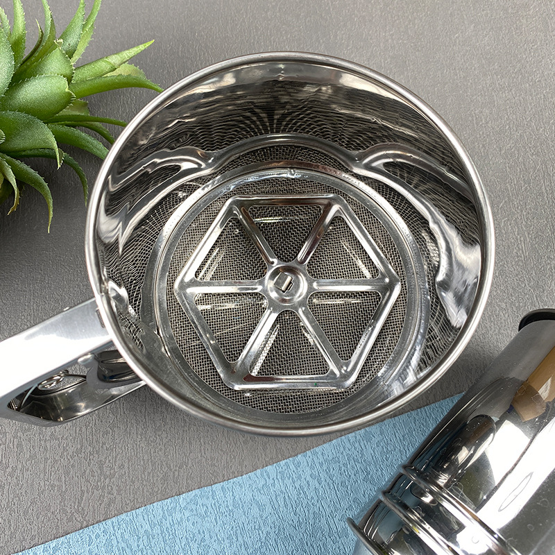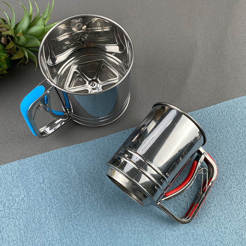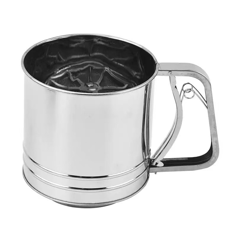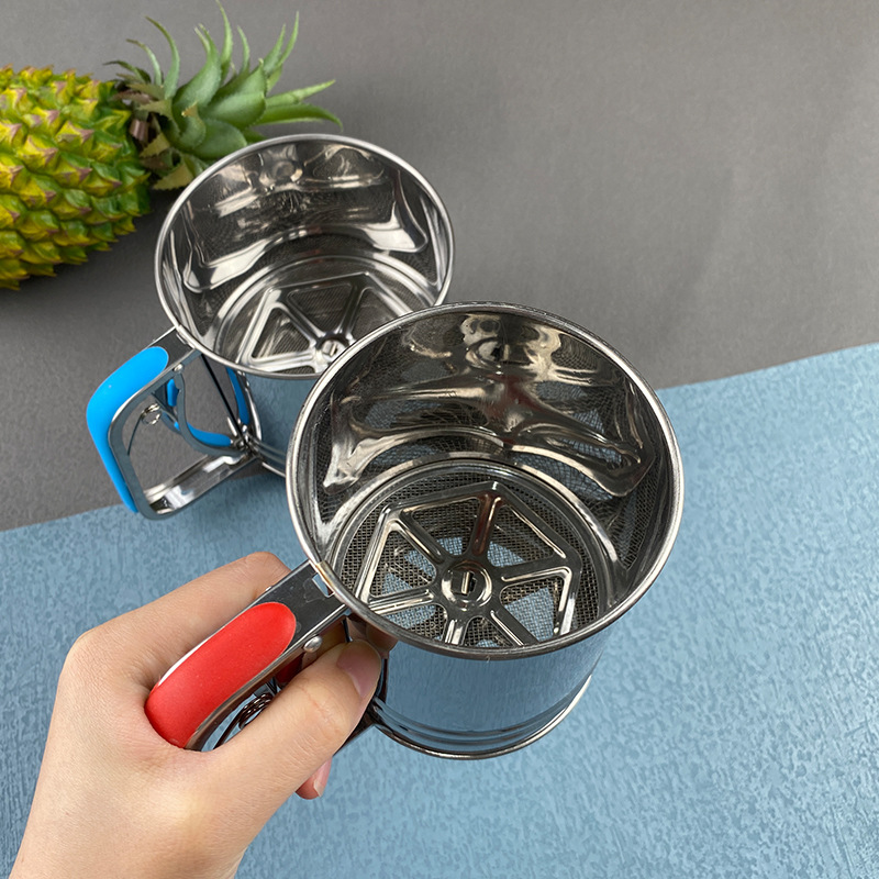 spot stainless steel small medium large flour sifter semi-automatic handheld flour sifter hand pressure baking tool