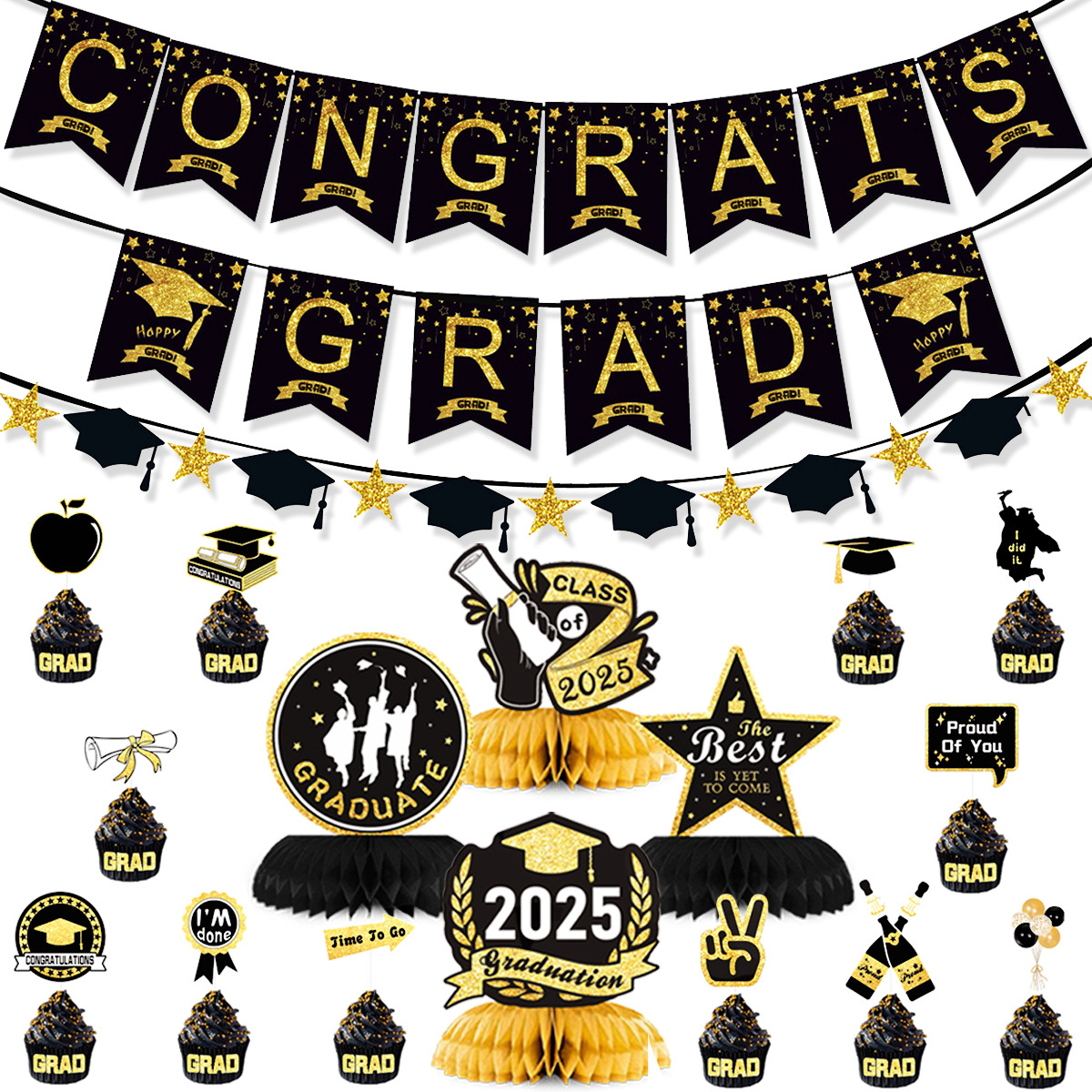 graduation golden hanging flag honeycomb suit ii