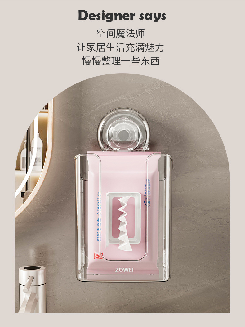 wall-mounted suction cup tissue box [light pink]