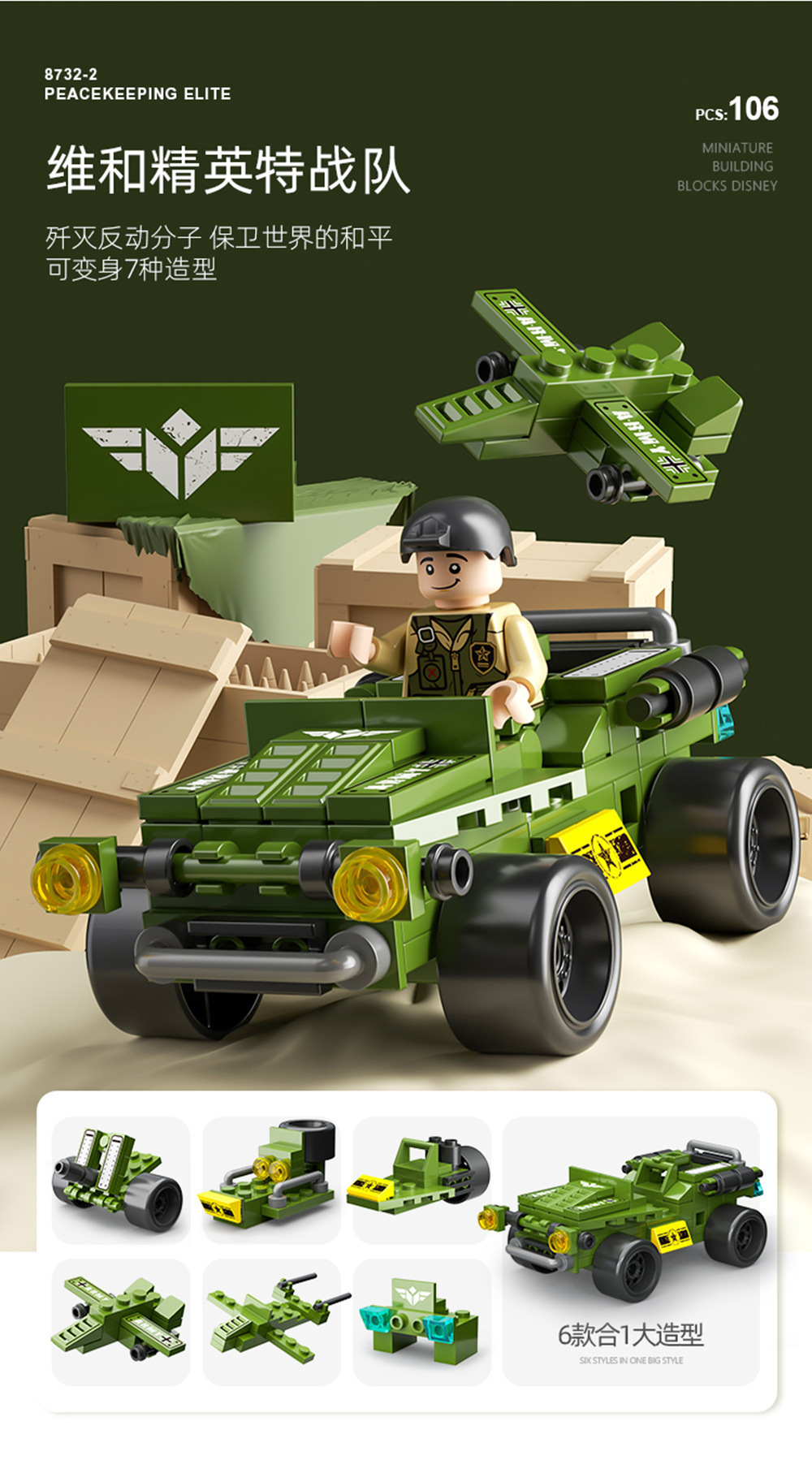 6 in 1 military off-road vehicle 106pcs