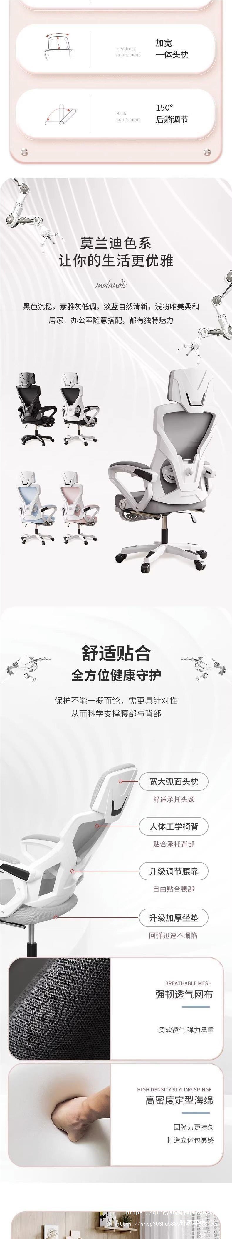 white frame blue four-item adjustment lumbar support-reclining with armrest