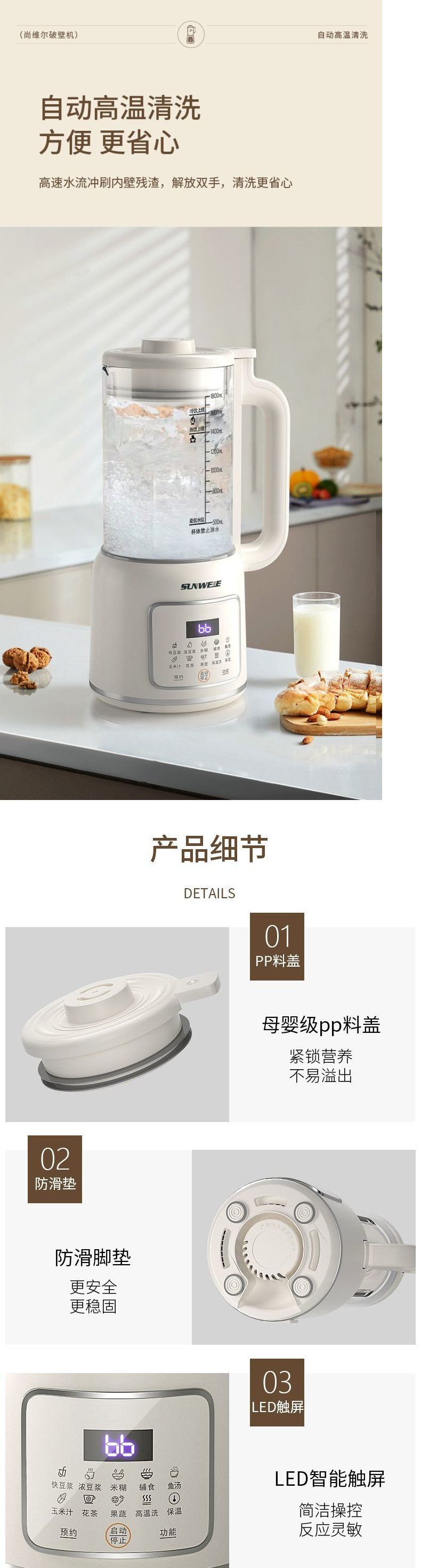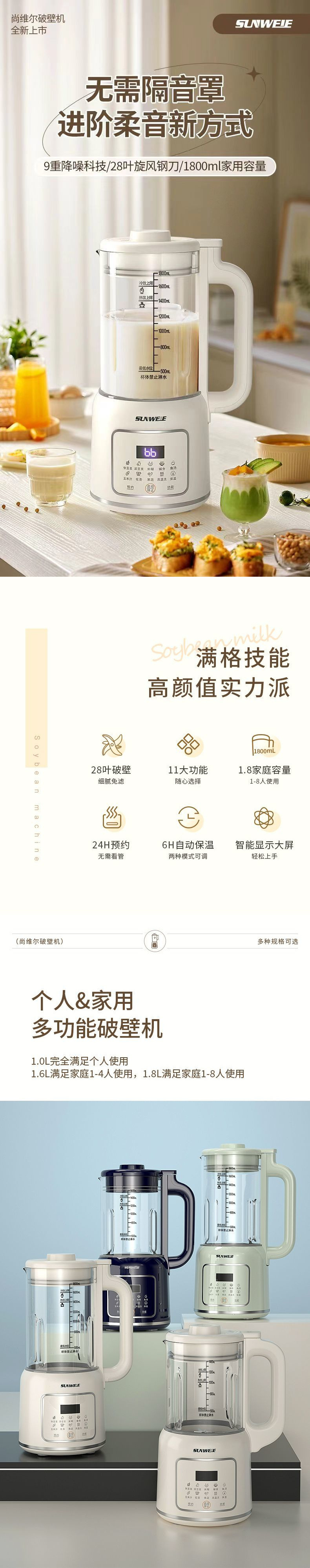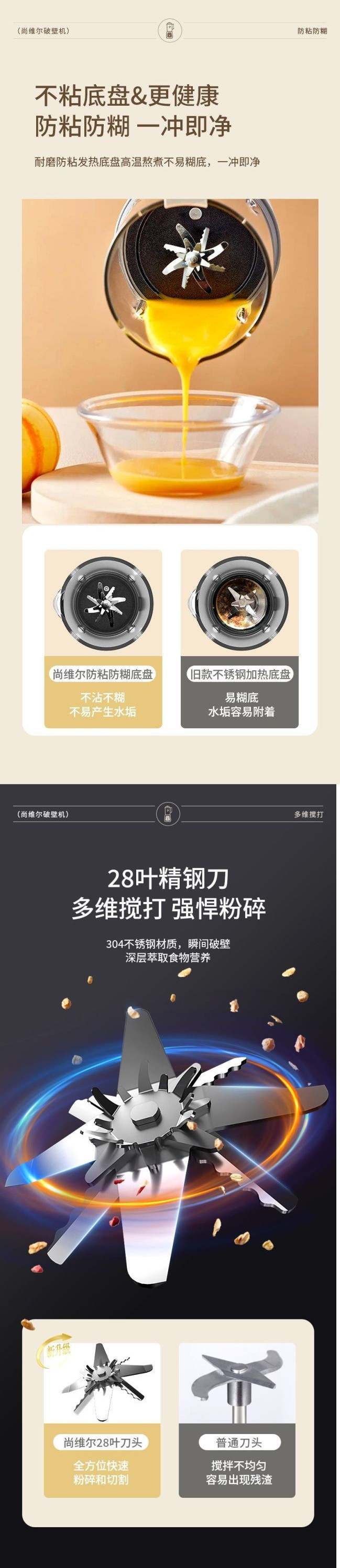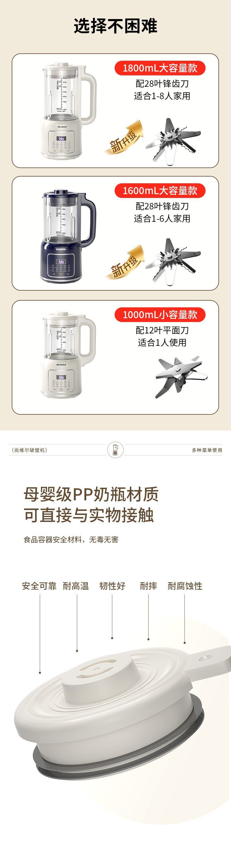 newly upgraded 28-leaf refined steel cutter head 1800ml + anti-paste bottom