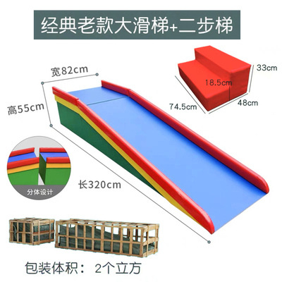 classic 3.2 m large slide + platform + two-step ladder + wooden box