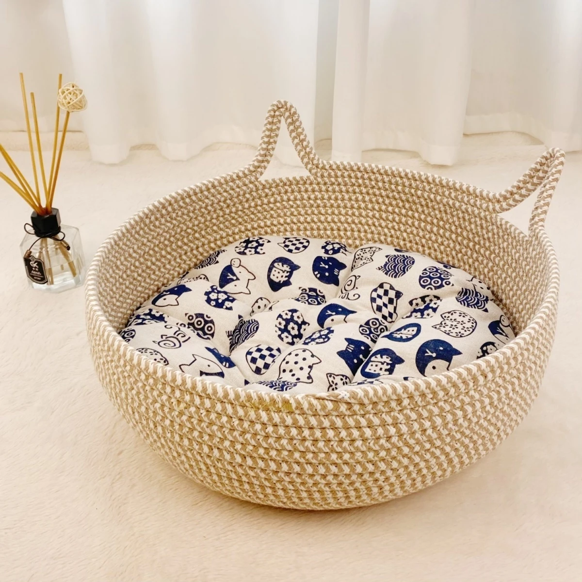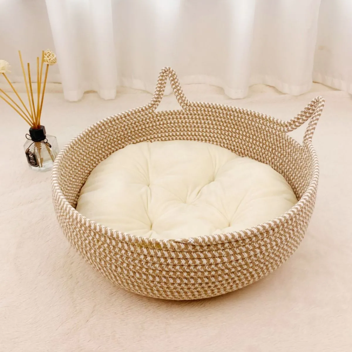 | [new arrival hot sale] beige khaki nest + cotton cushion + rattan mat | CN¥ 32.29 | 999999 piece available |
