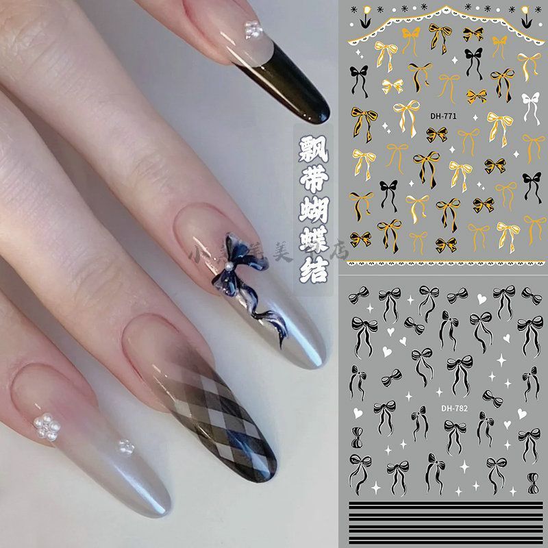 | 2 sheets] black and white black gold ribbon bowknot | CN¥ 6.48 | 999999 piece available |
