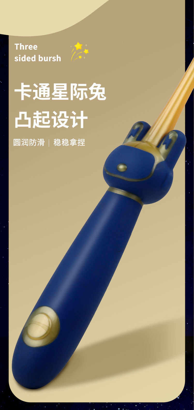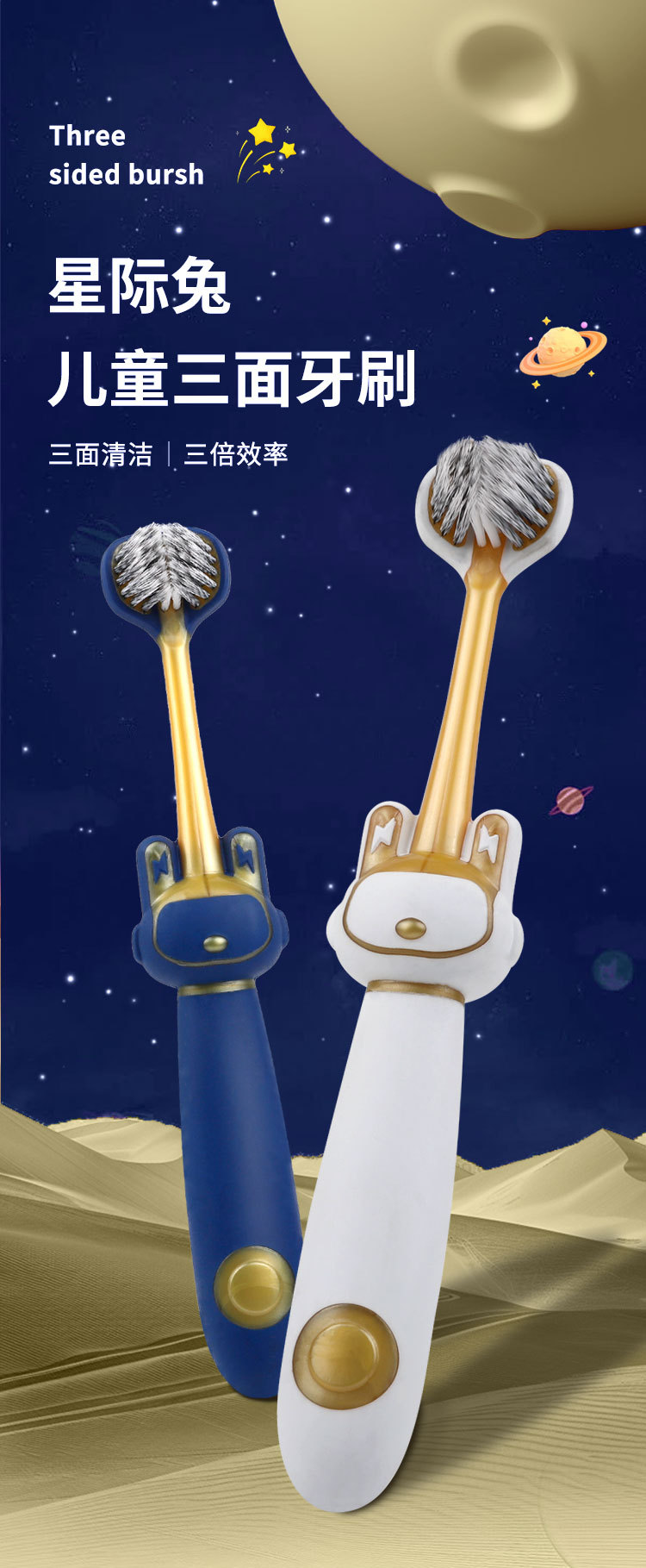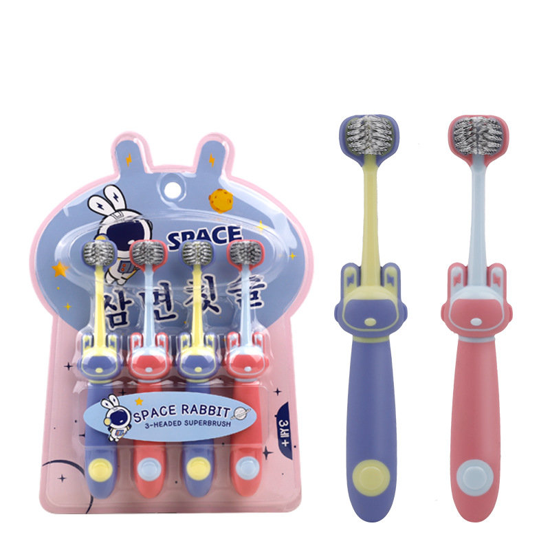 star rabbit three sides children's toothbrush-blue and white [4 pack]]