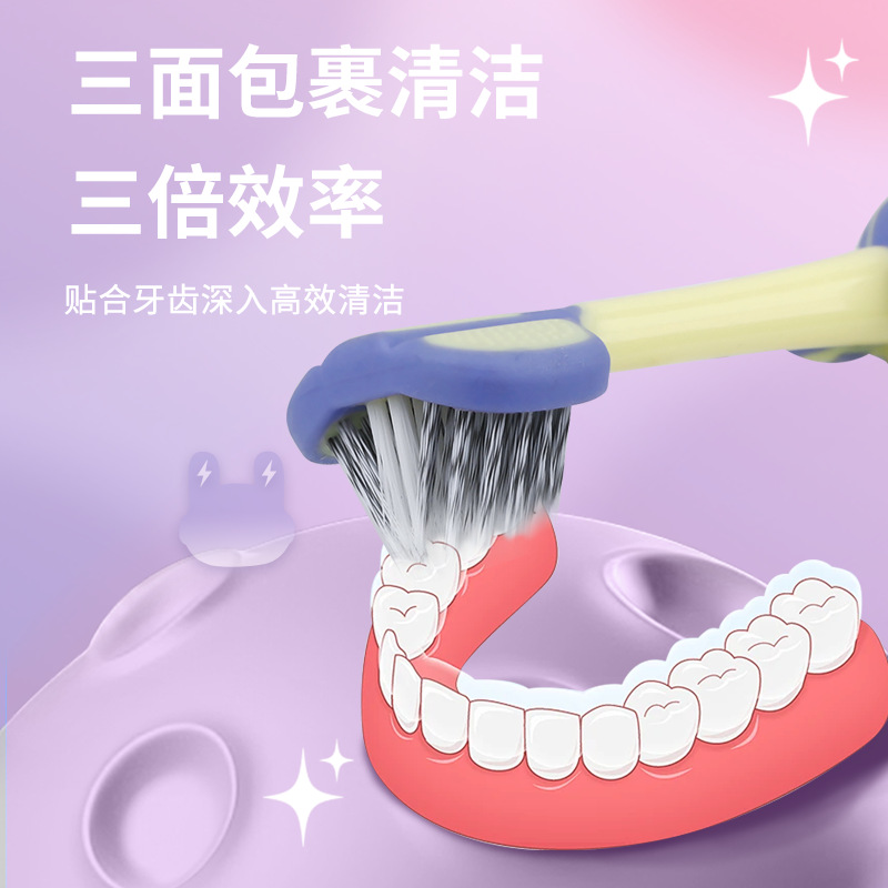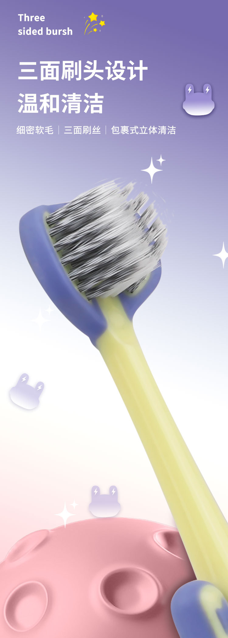 star rabbit three sides children's toothbrush-pink purple [4 pack]]