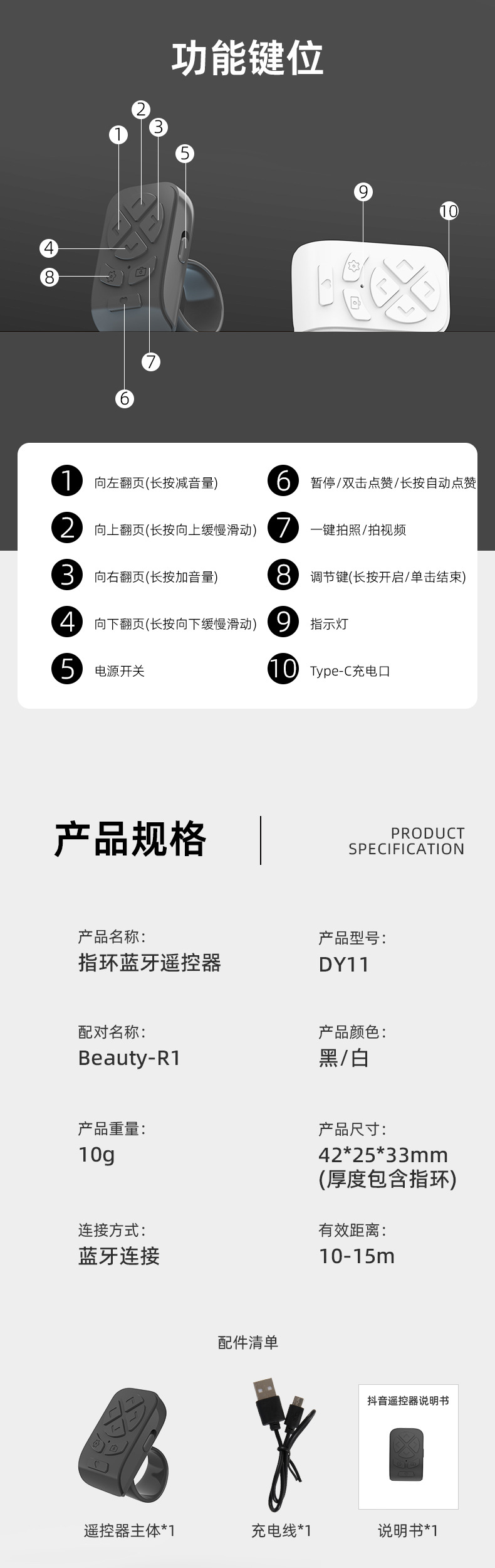 | ring black (pearlescent bag + manual + data cable) | ¥10.5 | 5171 piece available |