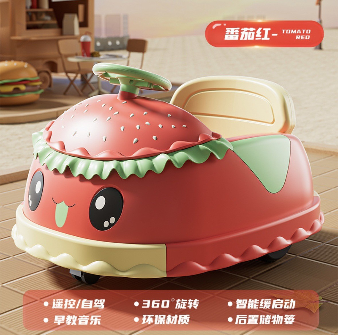 hamburger bumper car-tomato red (upgraded large battery)