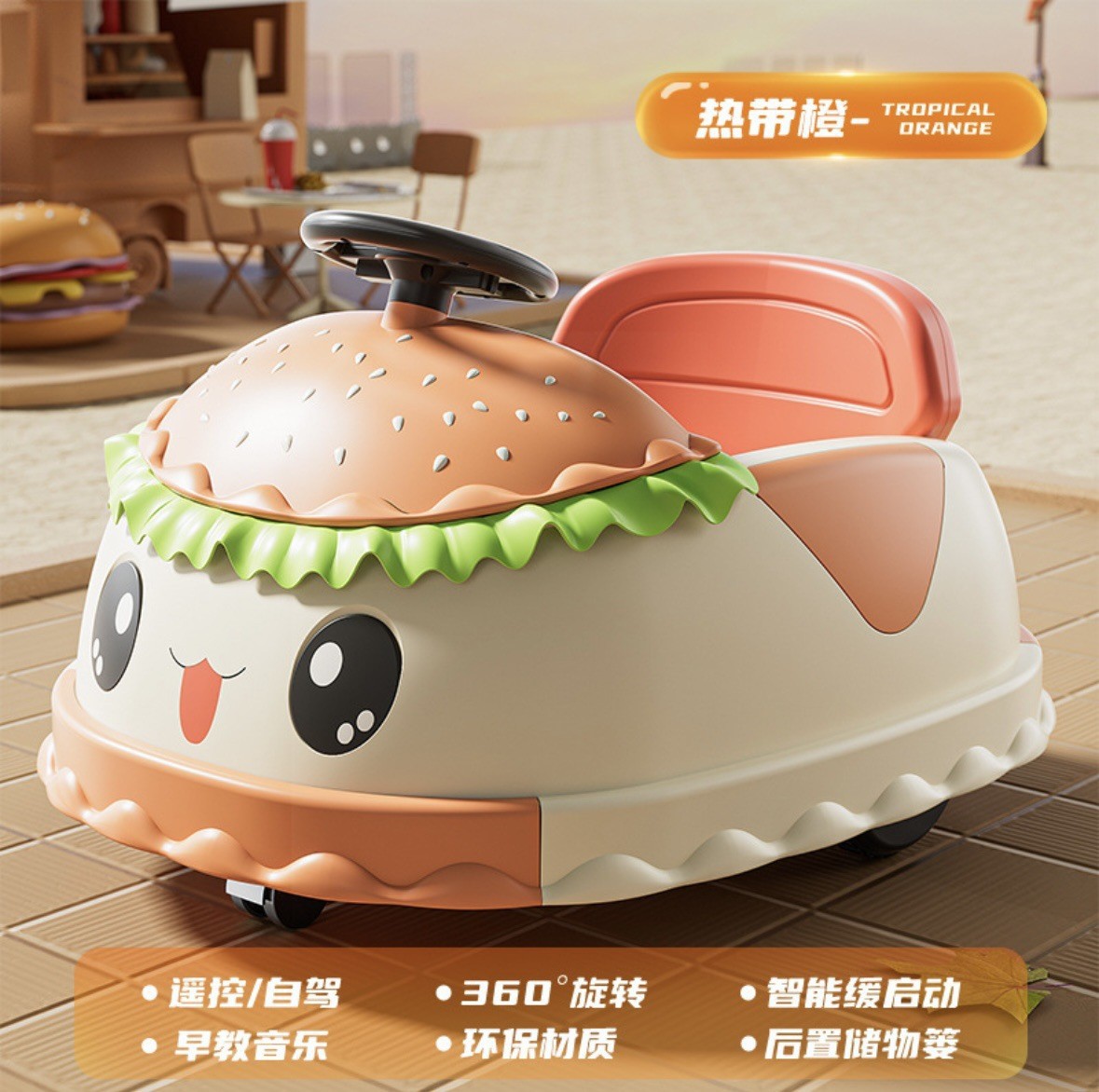 hamburger bumper car-tropical orange (upgrade large battery)