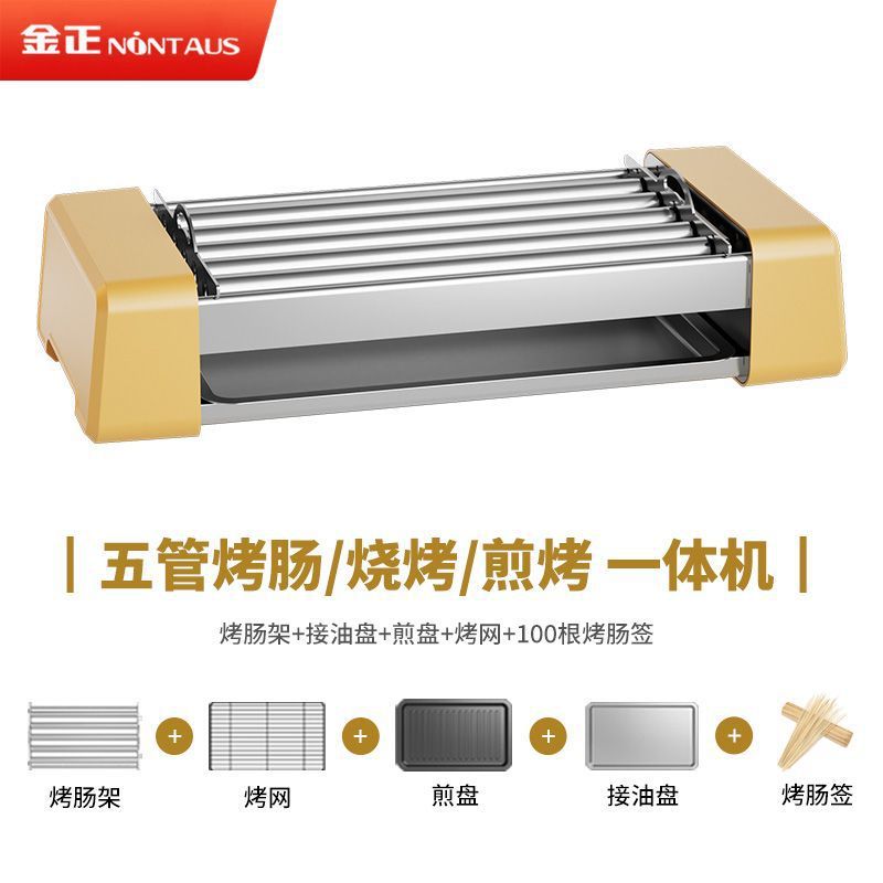 yellow five tubes with roasted sausage racks oil drip pan +100 pieces skewer