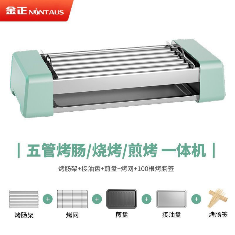 green five tubes with roasted sausage shelves oil drip pan +100 pcs skewer