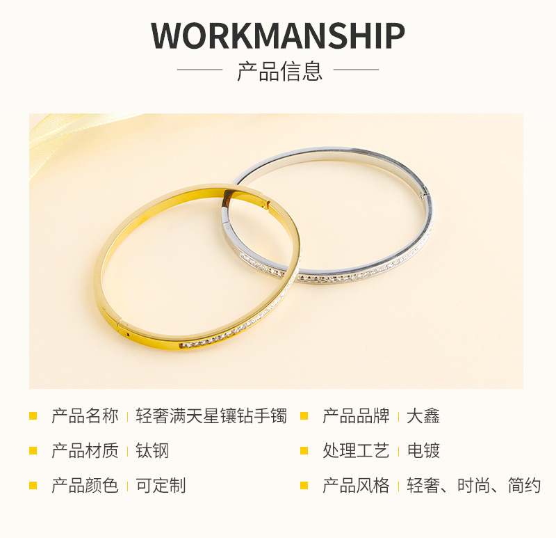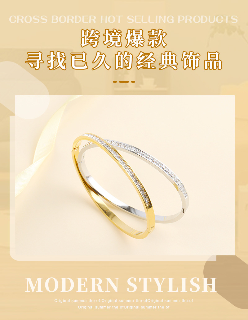 cross-border hot starry with diamonds titanium steel bracelet simple special interest light luxury design non-fading open mouth bracelet ins