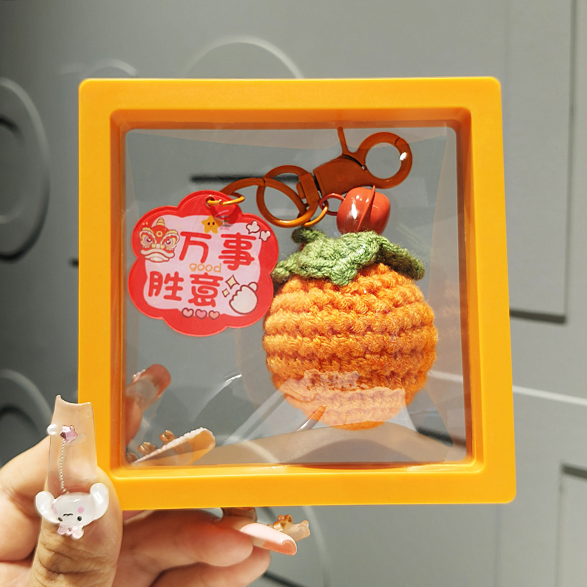 wool crocheted-photo frame lucky persimmon
